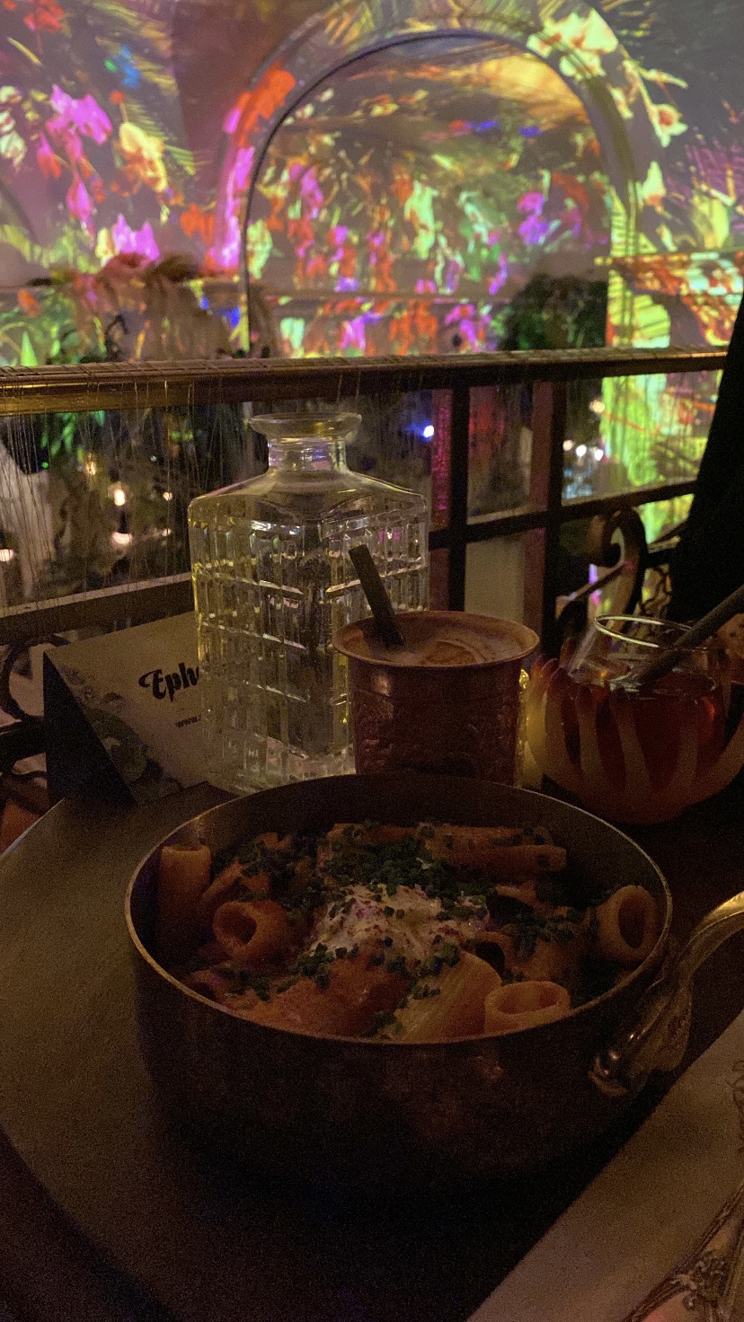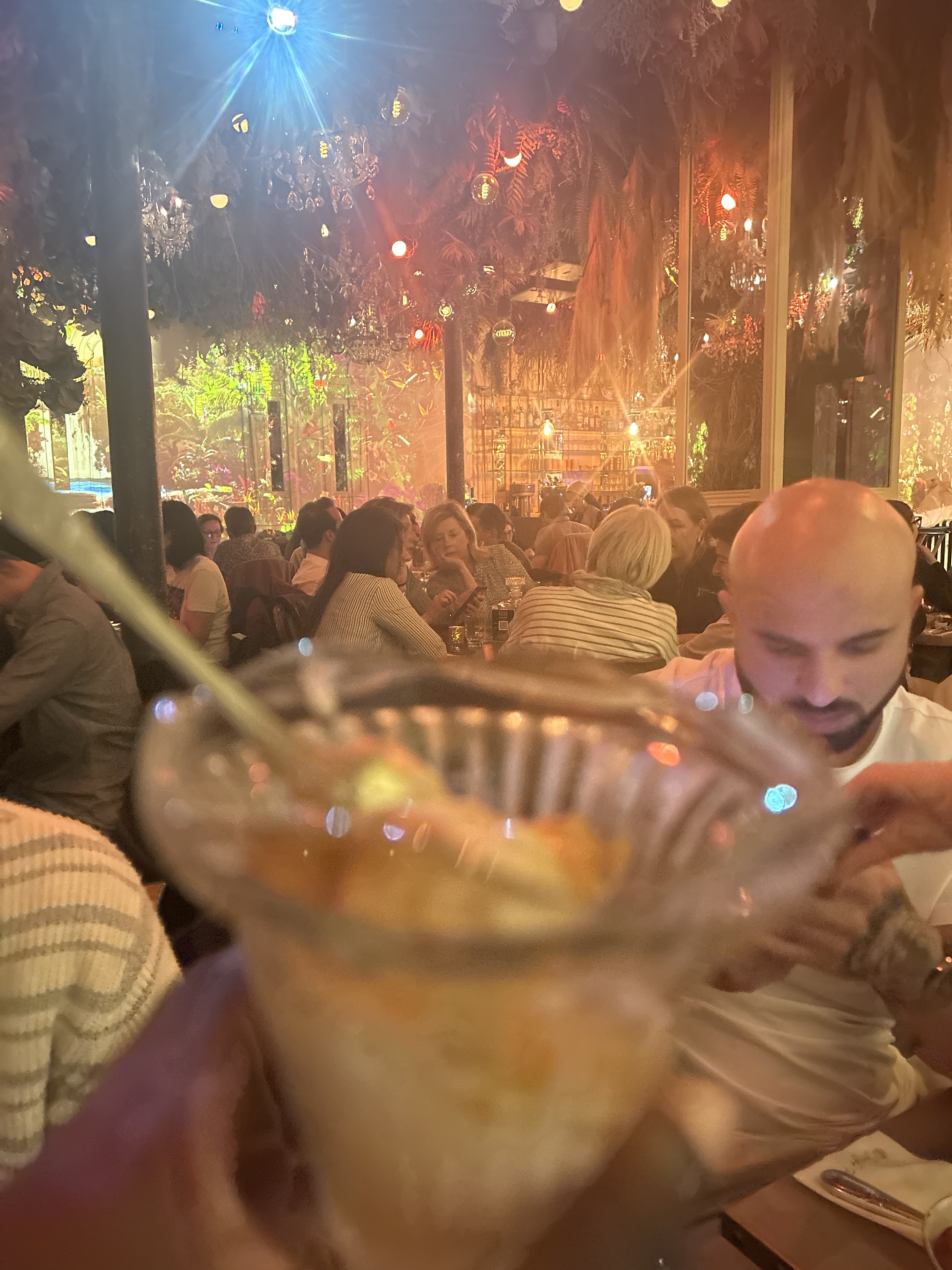 J’aime bien les restaurants du groupe Ephemera pour leur ambiance mais la qualité des plats est selon moi un peu moins au rdv chez Stellar et au Jungle Palace. J’ai pris des pâtes à l’arrabiata. La portion était très bien mais elles n’étaient pas du tout épicées et un peu écœurantes. Cocktail très bon mais beaucoup de glaçon ce qui justifie le petit prix 😕 Je recommande tout de même pour le cadre et l’ambiance ! Le service était rapide et efficace comme toujours 😊