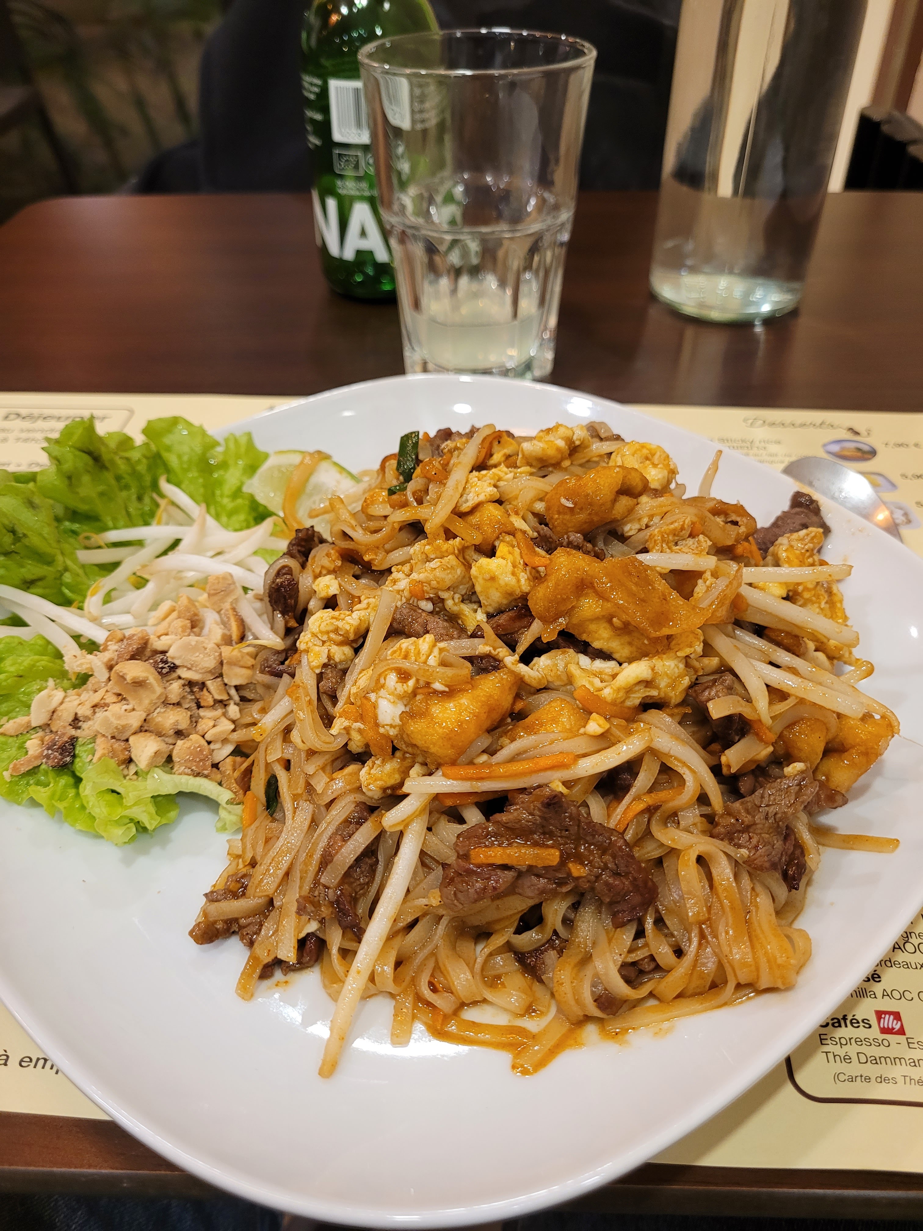 Grande découverte pour ma part, j’ai beaucoup aimé que ça soit la nourriture, l’accueil, le service…. Nous avons pris l’assiette mixe et Pad Thaï poulet et bœuf Je reviendrais !