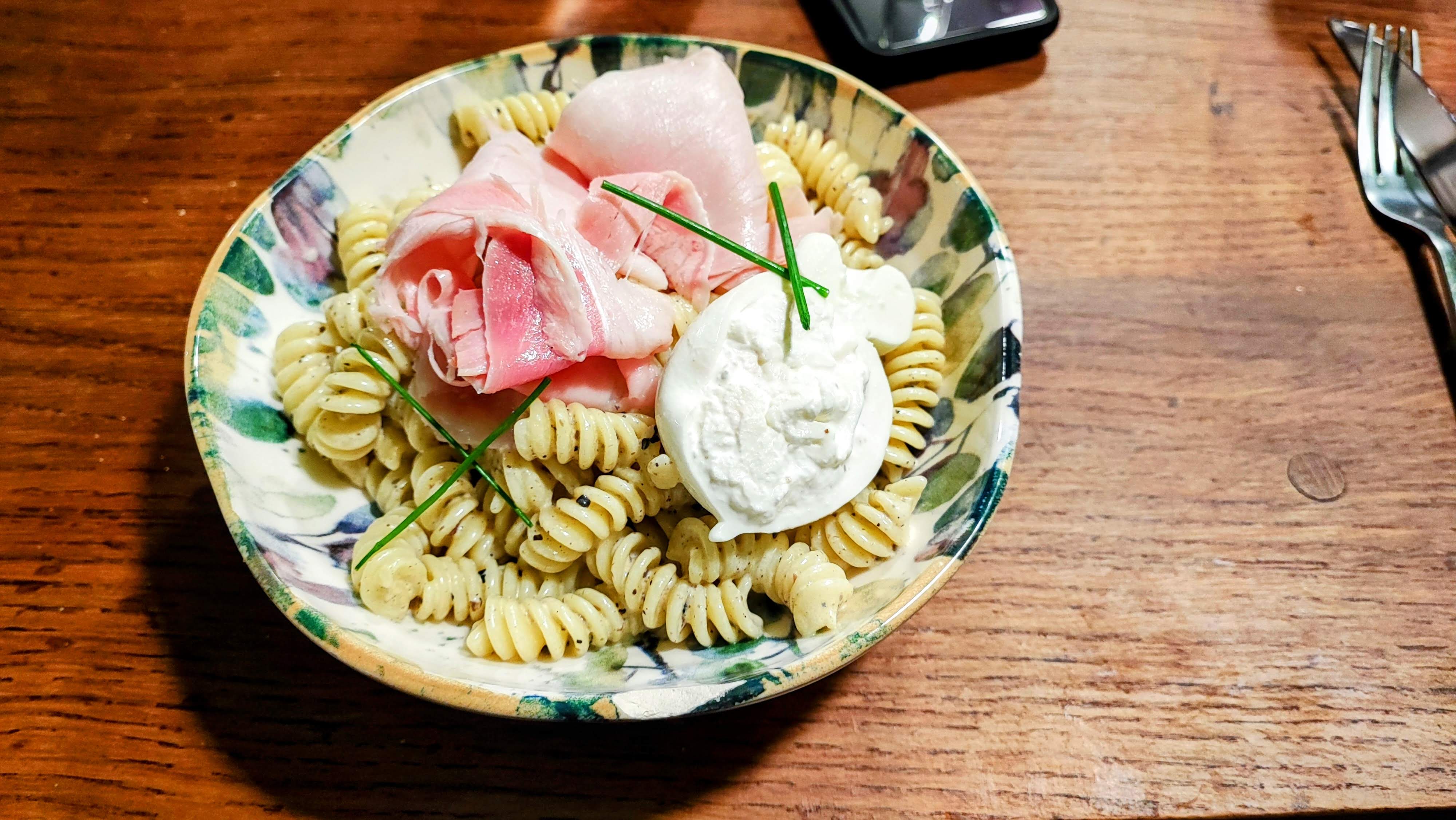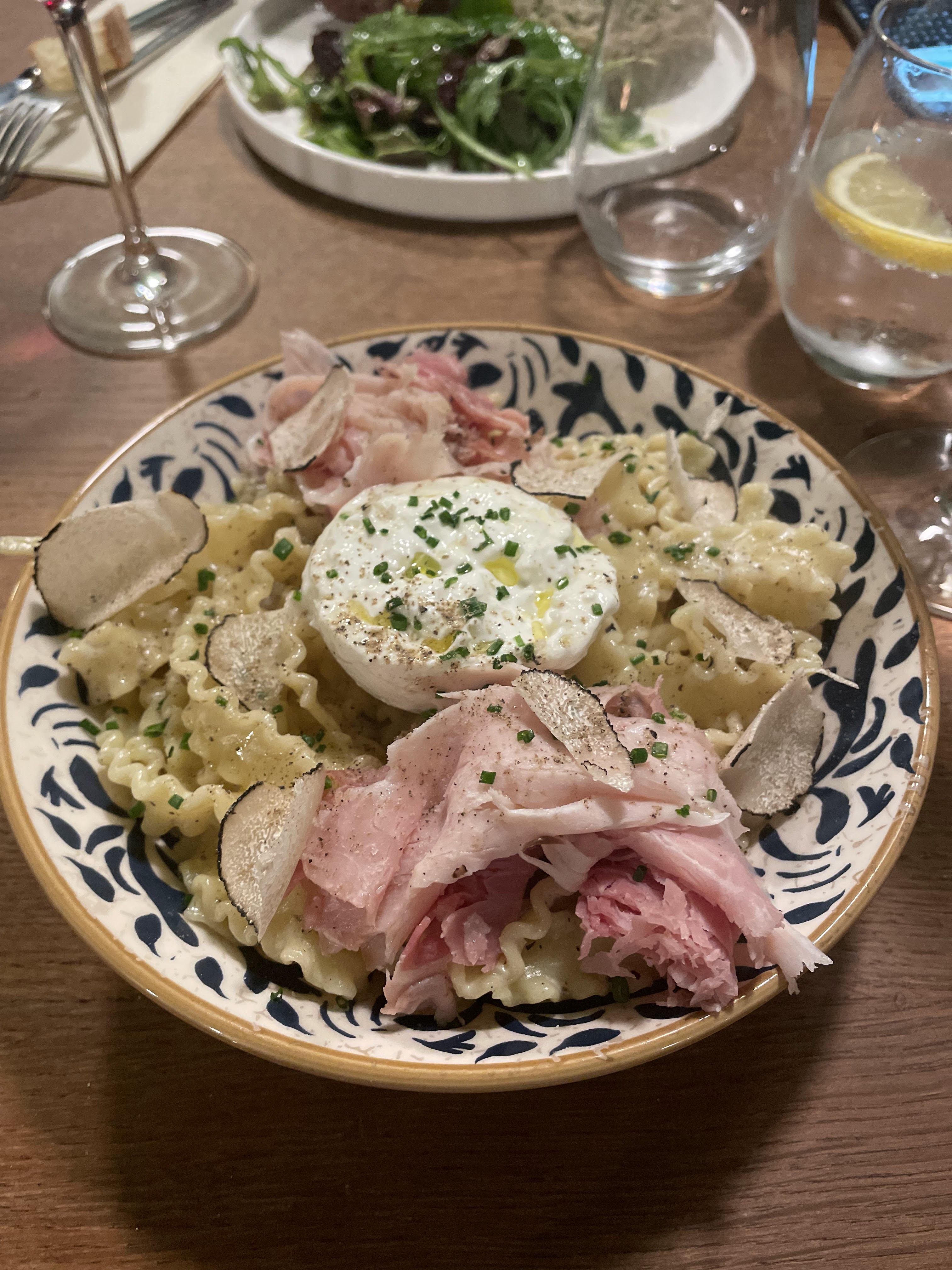 Moi qui de base n'aime pas les pâtes à la truffe c'était un sans faute ici, avec la burrata et le jambon. C'était très doux et le lieu est chouette :)