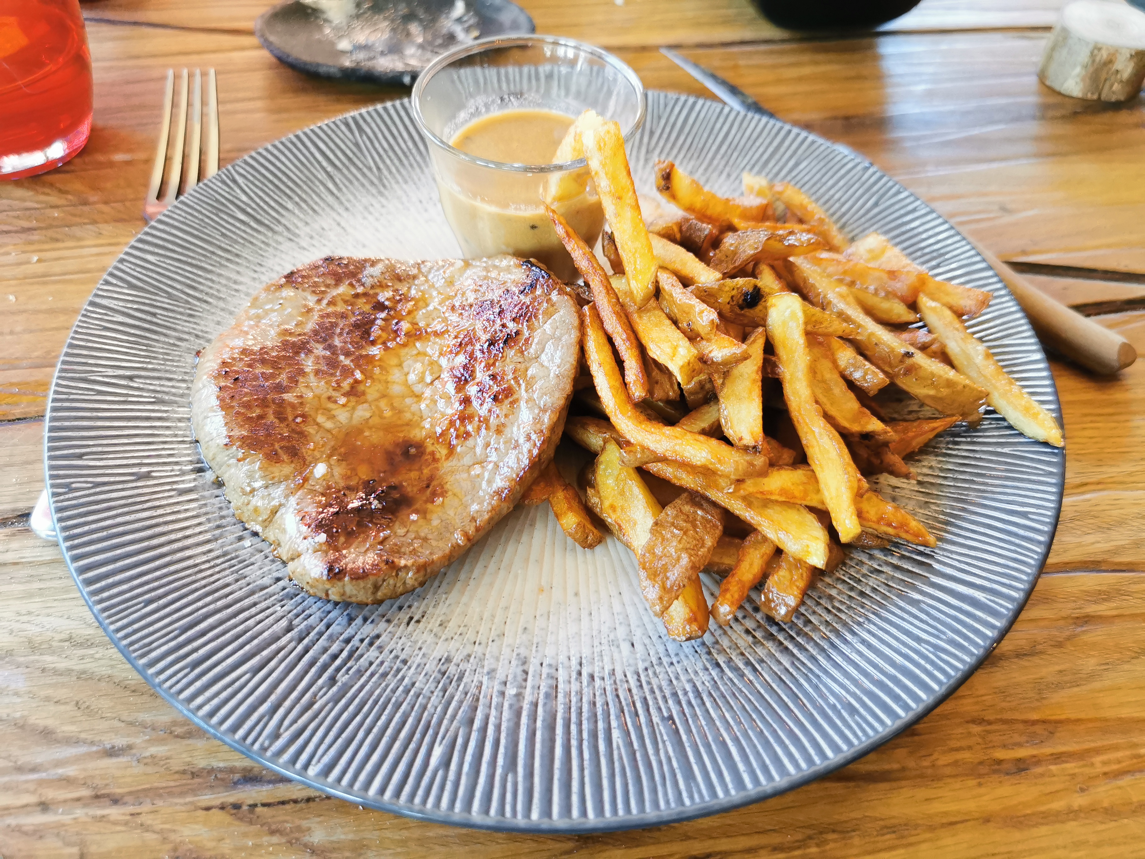 J’ai pris le menu midi avec le supplément d’une première entrée foie gras et une bouteille de vin blanc. Foie gras parfait, produit locale et bien présenté en quantité généreuse (c’est le gros +++ de ce restaurant). Pour le reste je trouve que le rapport qualité prix et 50/50. L’entrée crevette fenouil aurait pu être bien mais l’assaisonnement inexistant. Pour le plat, les frites maison parfaites, langue de boeuf fraîche bien préparée et assaisonnée, même si après avoir goûté pour la première fois je n’ai trop apprécié, juste une question de goût, la serveuse très aimable m’a même demandé s’il y avait eu un soucis avec la viande. Pour le fromage, j’aurais aimé un trio et un accompagnement sucré (raisin, noix). Le cadre est très bien, je ne pense pas que l’on peut trouvé mieux dans les 5km à la ronde. Quelques petits ajustements sur les entrées et desserts/ fromages, un choix de viande en plus et ça serait parfait. Je mets 3/5 car je pense que c’est une note à la hauteur (14/20 si on pouvait) et suis prêt à modifier ma note au prochain passage. Bonne continuation à vous tous 😊