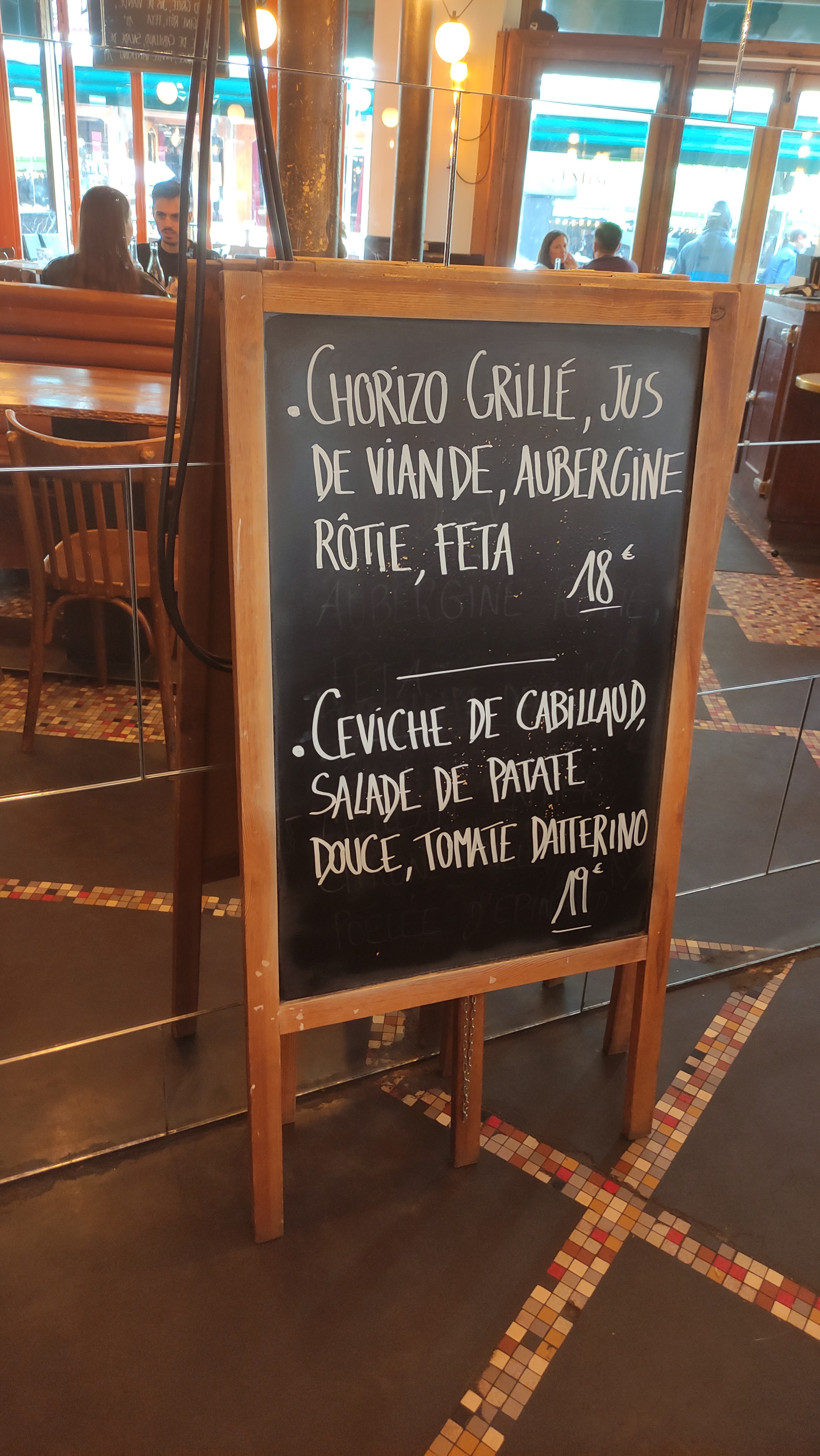 Une bonne expérience 🍽️ 😉 Avec mon frère, nous rentrons. Nous sommes accueillis par 3 personnes différentes, on s'occupe de nous ! Dommage que le sourire soit si discret. La déco est jolie. Le menu du midi 🕛 est à 12€50 pour entrée🥗 ou dessert🍰 + plat🍲 + café ☕ : imbattable sur Paris 🗼(lieu fréquenté). Le choix se faisait notamment entre rôti d'agneau, une 🥘 pizza 🍅🍆 et la classique mais très bonne bavette 🥩 accompagnée de ses 🍟frites 🏠. En dessert, entre un très bon crumble aux pommes et une délicieuse mascarpone au 🍋vert.