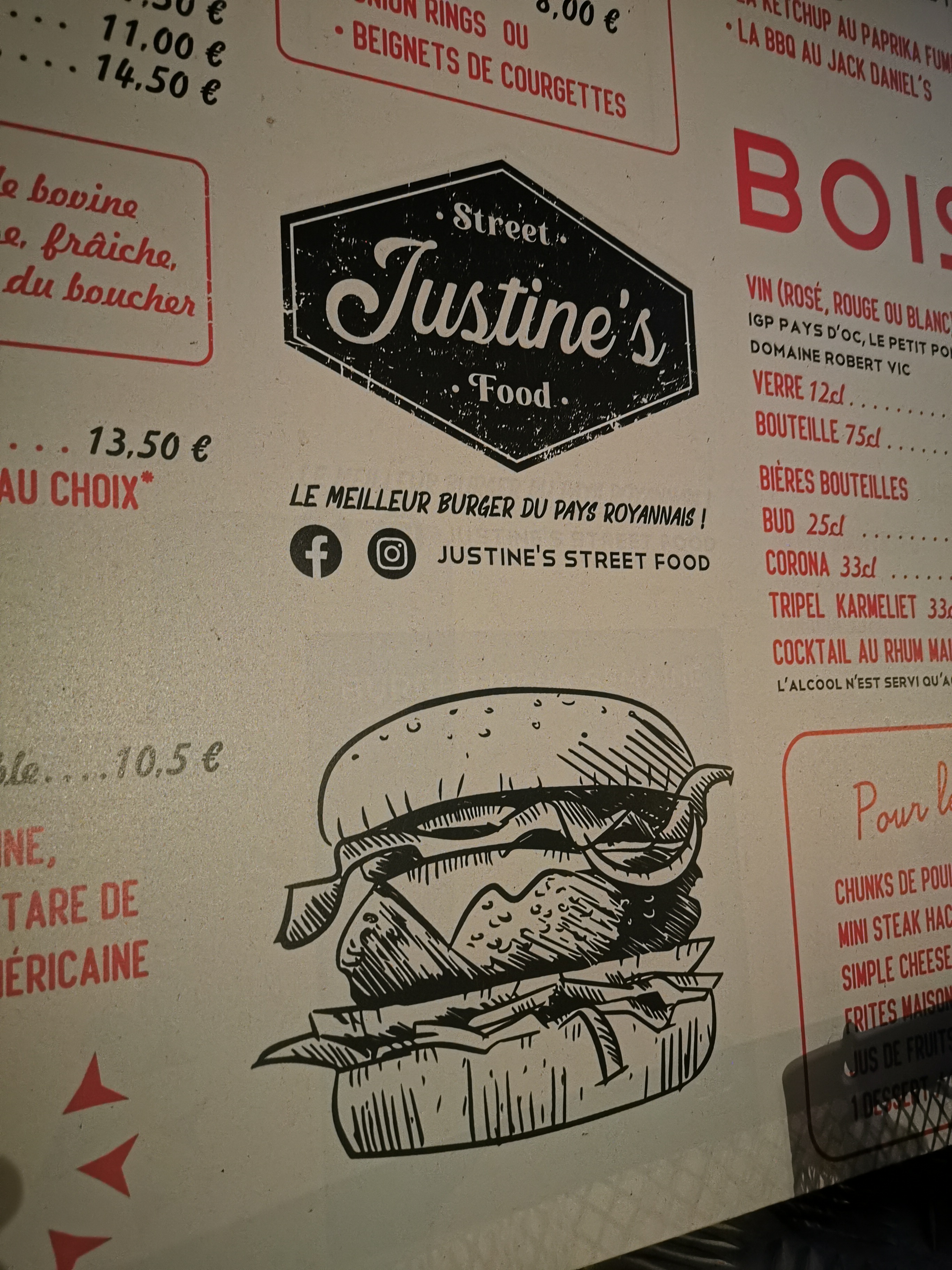 Justine est une personne souriante, agréable et très sympathique. Ses burgers sont délicieux. La déco est super sympa. Vous pouvez vous y rendre sans hésiter.