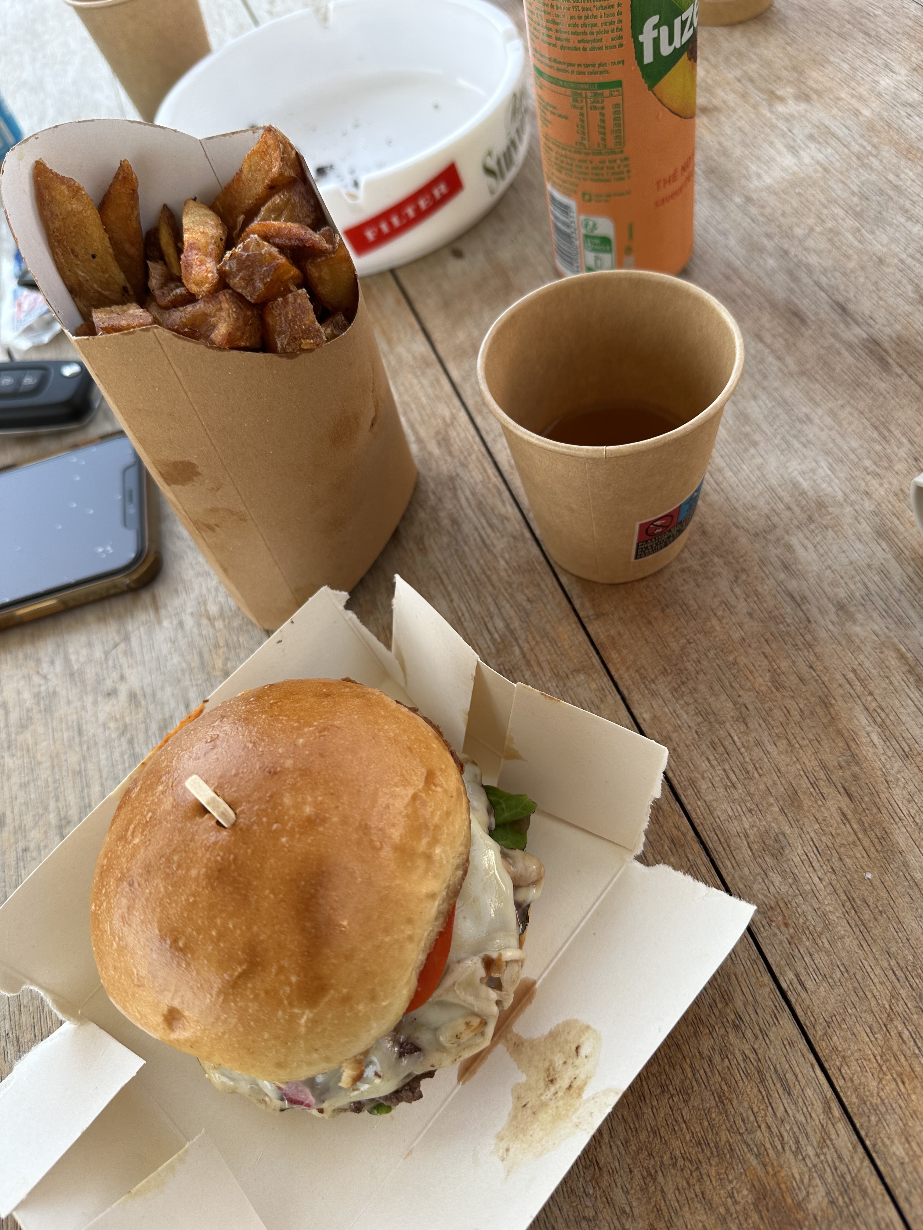 Assez déçus, un french burger commandé,aucun intérêt,la tranche de fromage est tell fine que je ne l ai pas sentie,la sauce verte avec tous ces ingrédients n est pas équilibrée ,y a que l me goût de l estragon en bouche,mon mari a pris un autre sandwich,il me dit qu il a l impression de manger un steack avec sauce tomate (certes bonne) et un cornichon,bref on es habitué à la concurrence sur la presqu'île d Arvert que nous préférons,