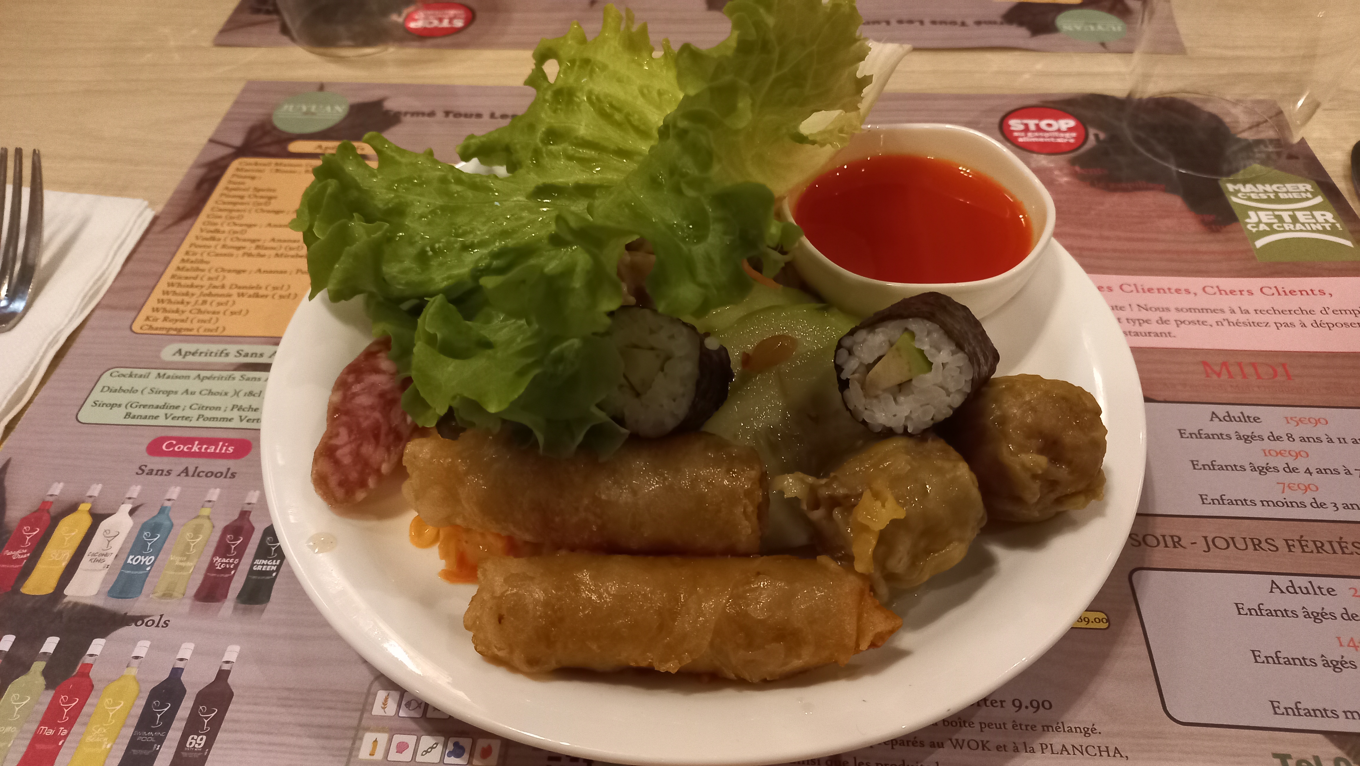 Déçus j'ai connu mieux comme chinois a volonté le prix est cher pour se qui est proposé peu de choix en nem et samoussa. Et la fraîcheur de certain produit et douteux (cuisse de grenouilles avaient une drôle d'odeur)