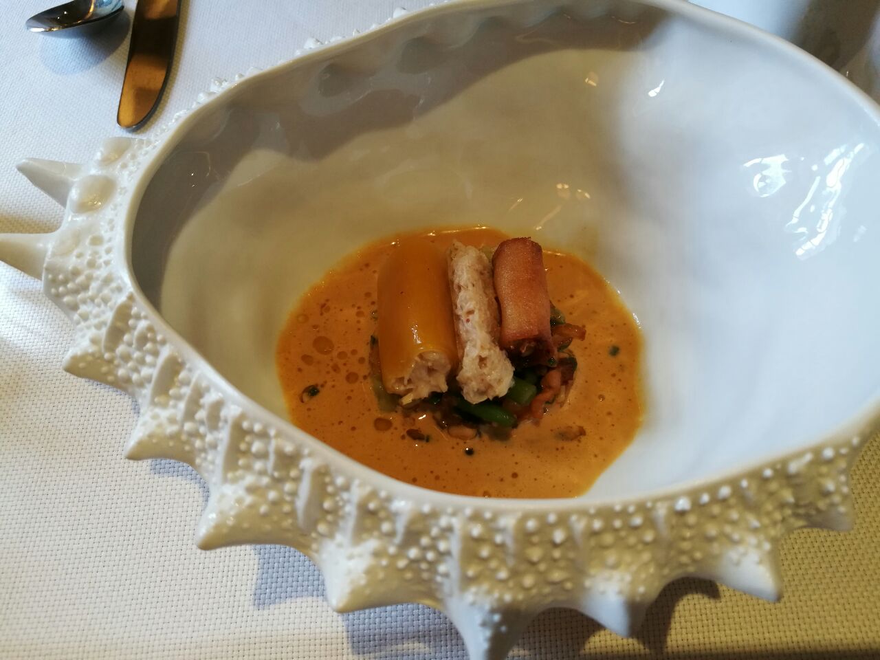 Restaurant 2 étoiles Michelin, vous savez donc que la nourriture et le service seront excellents, et ils l'étaient tous les deux. Nous avions un menu de 10 plats, qui a fini par être 13. Le bon avait une touche asiatique avec des combinaisons de goûts fascinantes. Le point culminant a été l'arrêt du chef Schillinger à notre table pour une longue conversation sur la nourriture et l'inspiration.