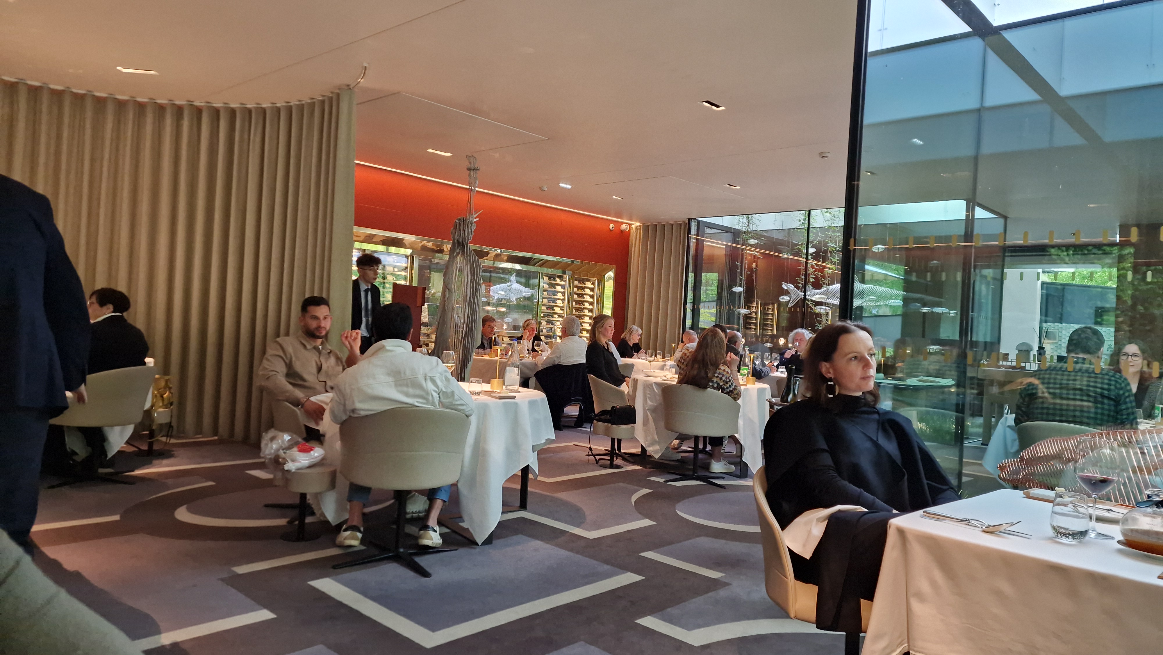 Le lieu est magnifique, très moderne et apuré. La gastronomie est exceptionnelle avec une finalité sur un dessert époustouflant et un buffet des mignardises tout en finesse. Le pain est très très bon avec un coup de cœur pour le pain feuilleté. Le service est moyen: bcp bcp de passages de serveurs ds la salle. Ce qui ne laisse pas bcp de calme. La patronne est très active et énergique afin de rendre ce lieu au top. Le point très négatif : le sommelier. Très arrogant et sûr de lui, voir désagréable à la première approche. Il n’est pas capable d’analyser le public en face et de s’adapter en fonction des connaissances œnologiques. Nous l’avons même entendu dire des « énormités œnologiques » à des clients! Une petite visite du chef à la fin aurait été également apprécié même si nous savons qu’il était très occupé. Bref, sans le sommelier, ça serait parfait!