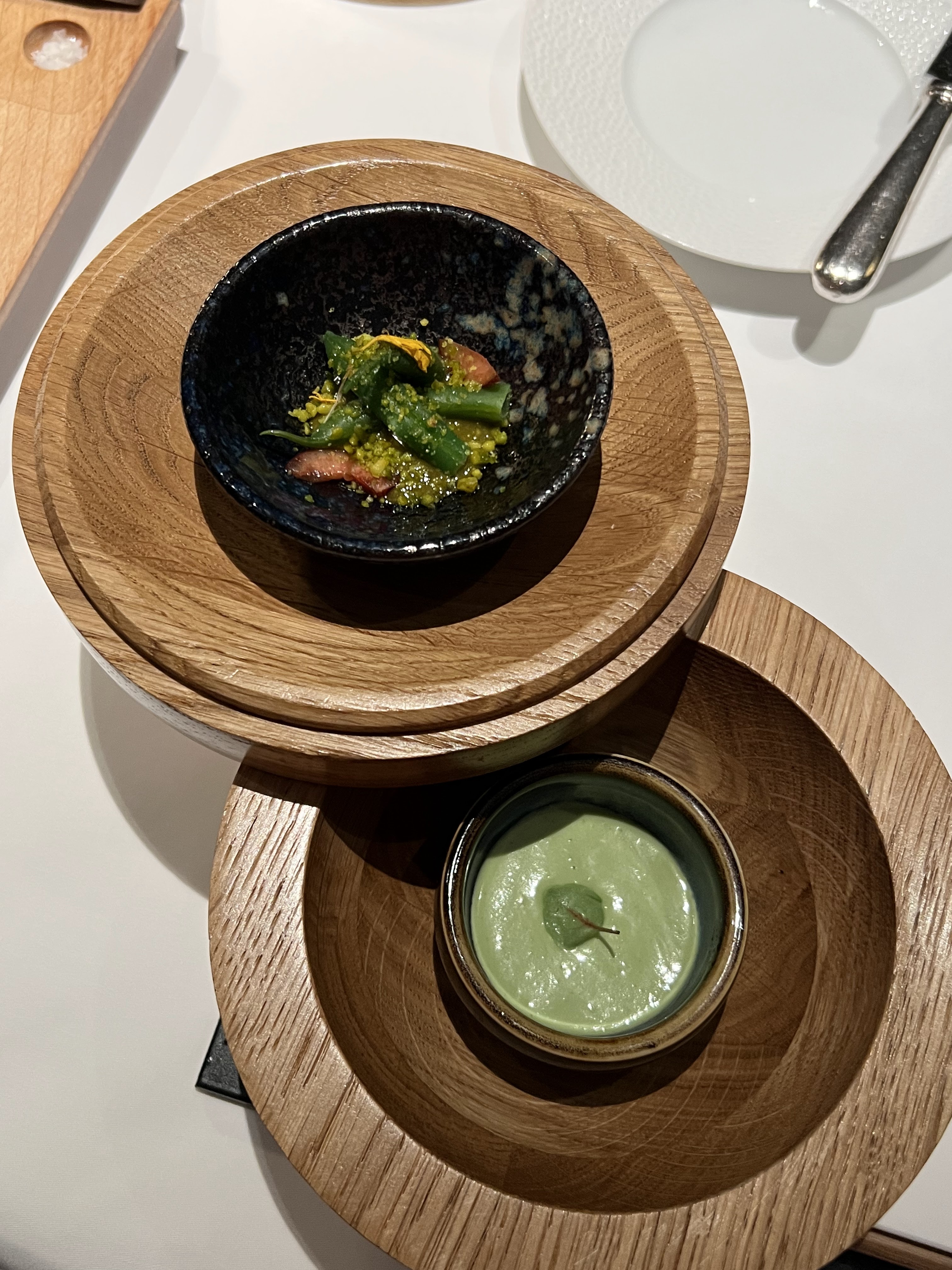 Deux menus, 1 menu 6 plats végétal, 1 menu 10 plats. Une découverte à chaque bouchée pour ma femme et moi. La présentation en détail de chaque plat, accompagné d'un vin parfaitement adapté à rendu l'expérience unique et délicieuse. Merci au personnel et bravo au chef et à son équipe. Hâte de revenir à la prochaine saison pour découvrir de nouveaux plats !
