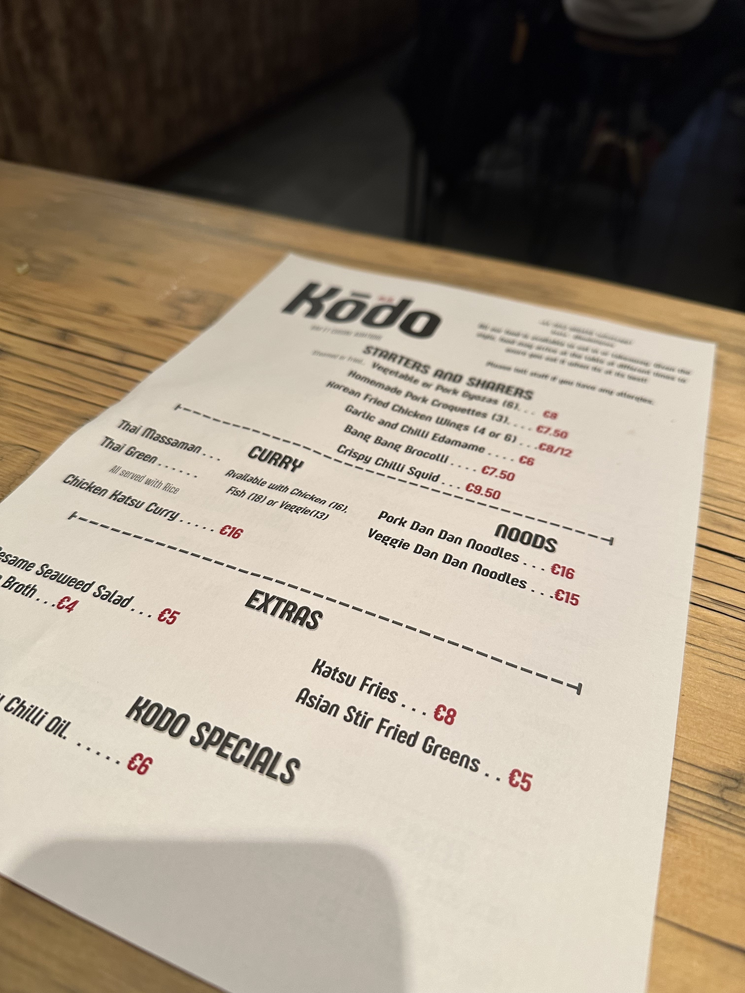 J'ai visité Kodo plusieurs fois en décembre, un charmant petit bar, avec un excellent service et une cuisine fantastique, je recommande vivement une visite.