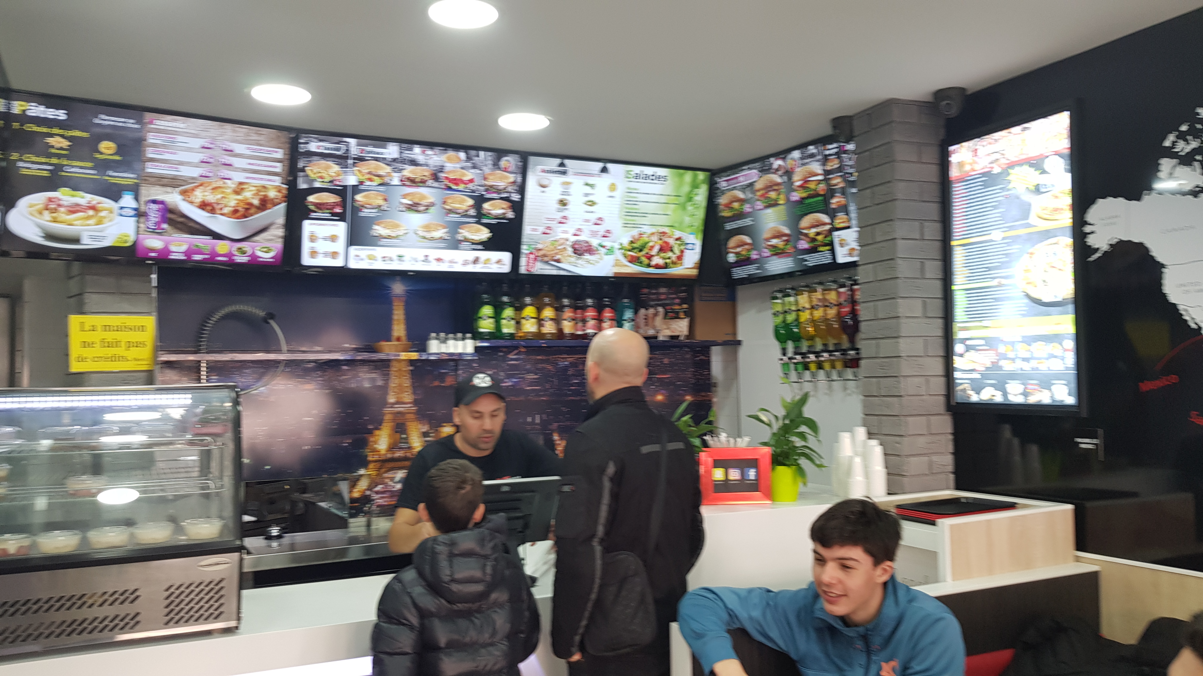 Resto rapide, propre, assez spacieux et les plats sont de bonne qualité. À éviter à l'heure de la sortie des cours si on veut être tranquille car c'est le rendez-vous des ados des écoles du voisinage. Vous avez intérêt à savoir rapidement ce que vous voulez manger, surtout aux heures d'affluence, car derrière le comptoir on est aimable, c'est vrai, mais on s'impatiente vite. De toutes façons, les burgers ont des noms différents mais ils ont tous le même goût... Et pas la peine de préciser que vous voulez tel burger mais sans fromage, parce que finalement, il y aura quand même du fromage dans le burger.