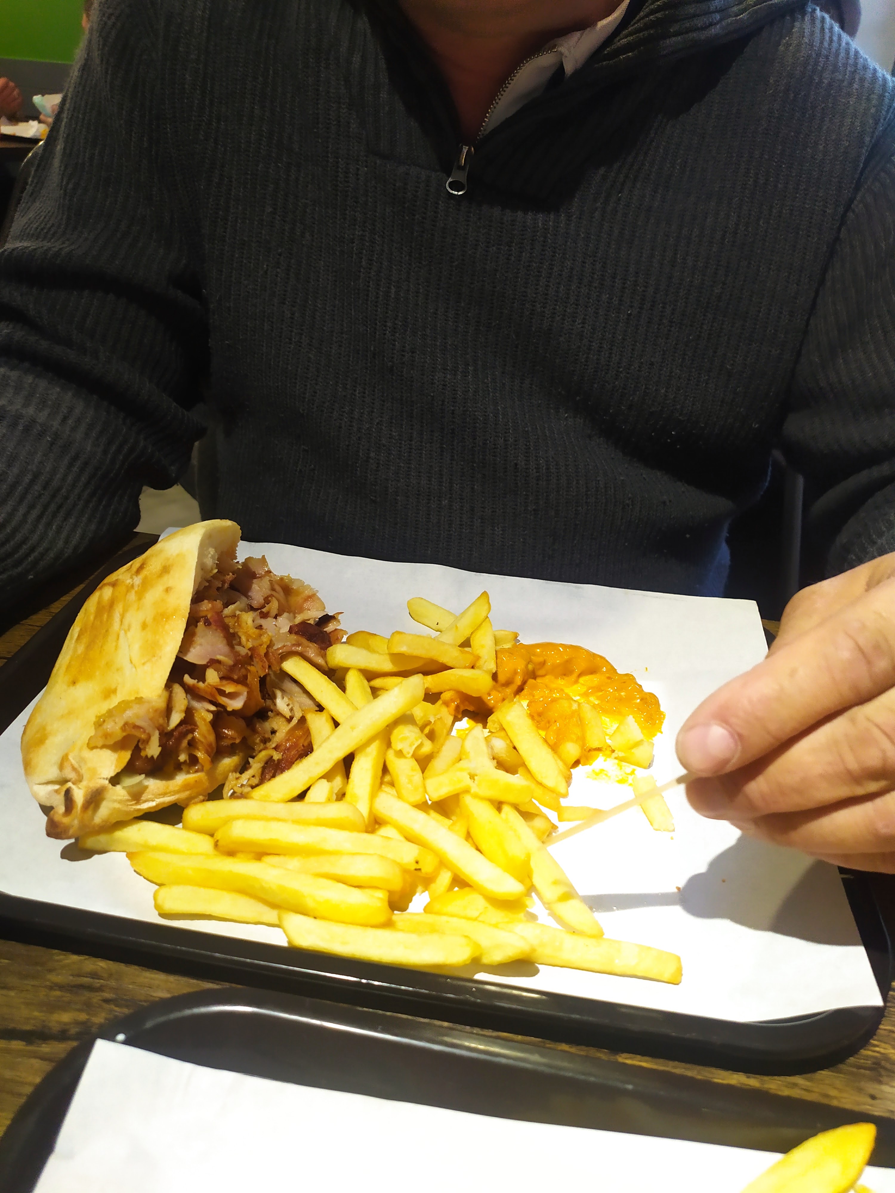 J'ai pris un kebab, viandes sans gout, sauce non plus. Je ne recommande pas.