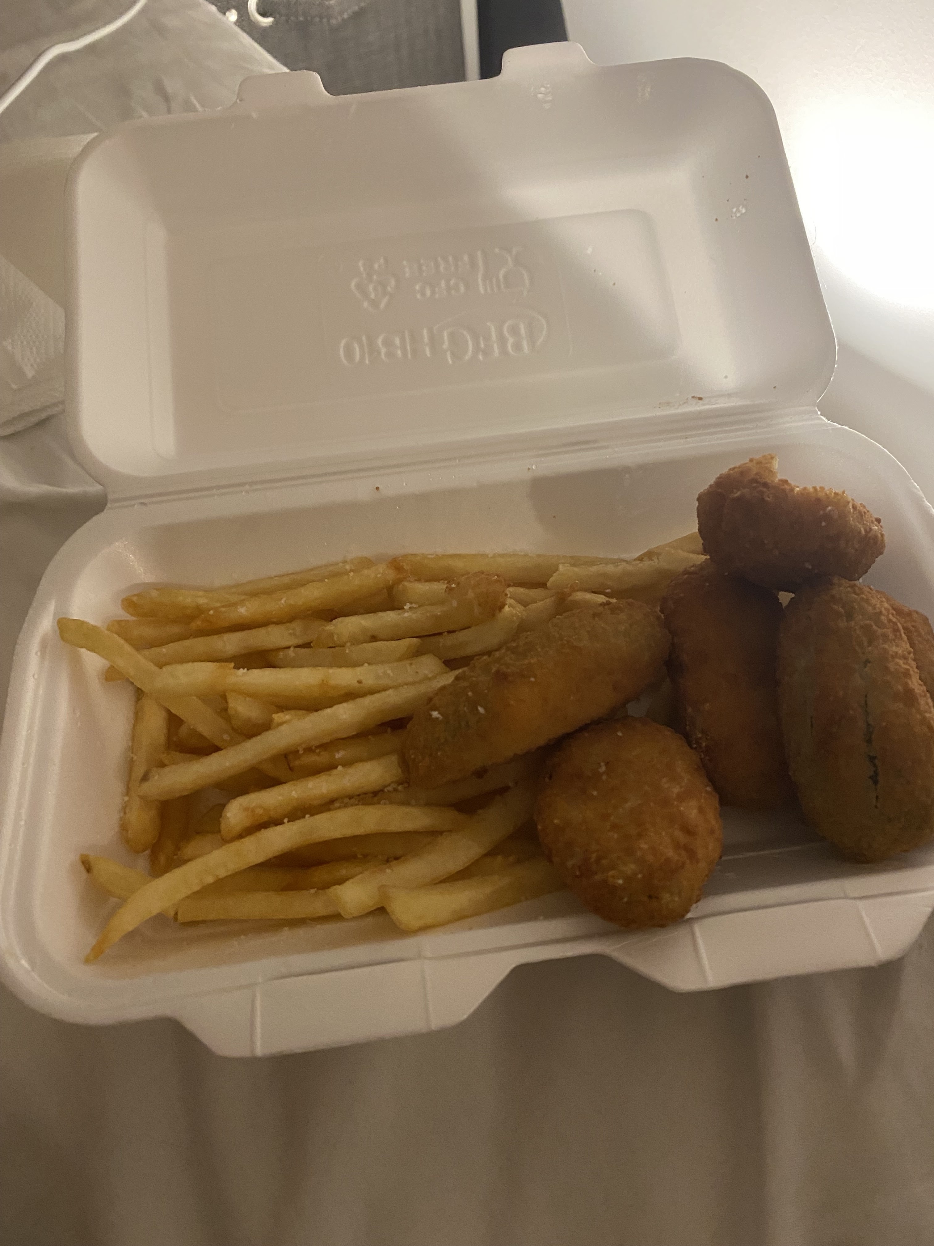 On a pris de menu frites, sandwich + boisson à emporter et on avait déjà mangé sur place. Super ambiance, musique. Les employés son gentil et souriant on a pas mal de frite et les sandwich, burger, tacos son bien garni et reste bien chaud même à emporter ! Vraiment satisfait on reviendra ! 😁
