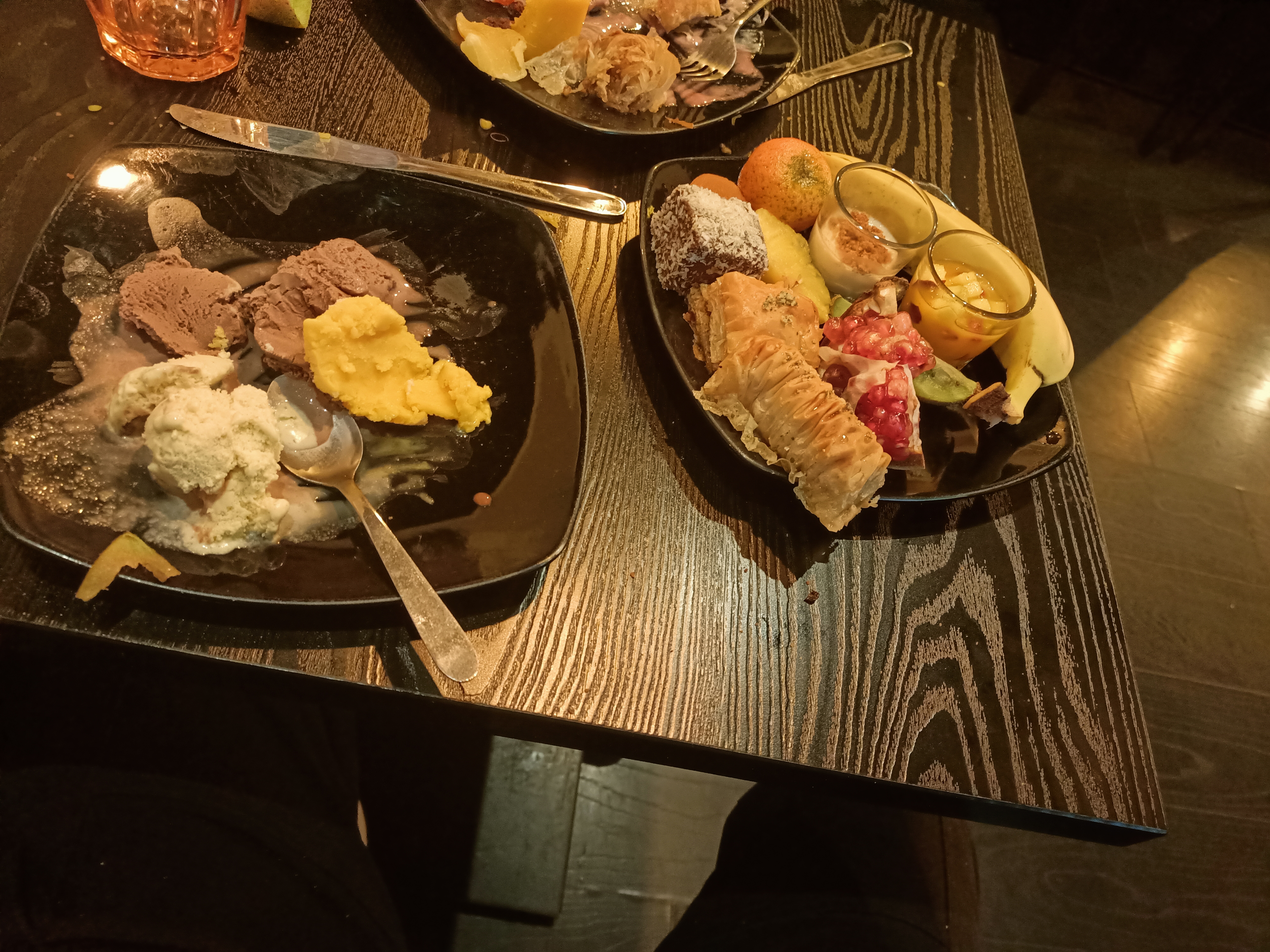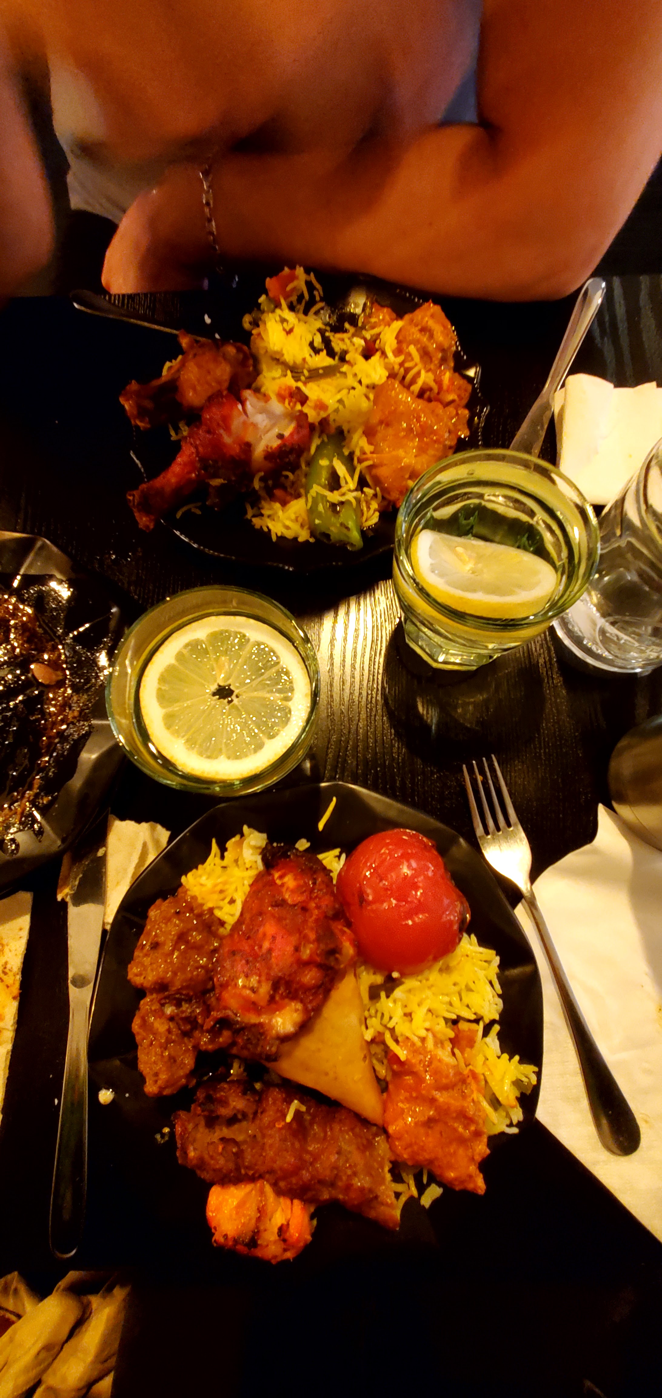 Les plats iraniens n'étaient pas aussi bons que les plats indiens, dans la plupart des plats il y avait plus de sauce que de viande et la viande était coupée en tout petits morceaux, les desserts n'étaient pas typiques, c'était des gâteaux industriels ou de supermarché. Le pain genre libanais n'était pas frais, il était sec.