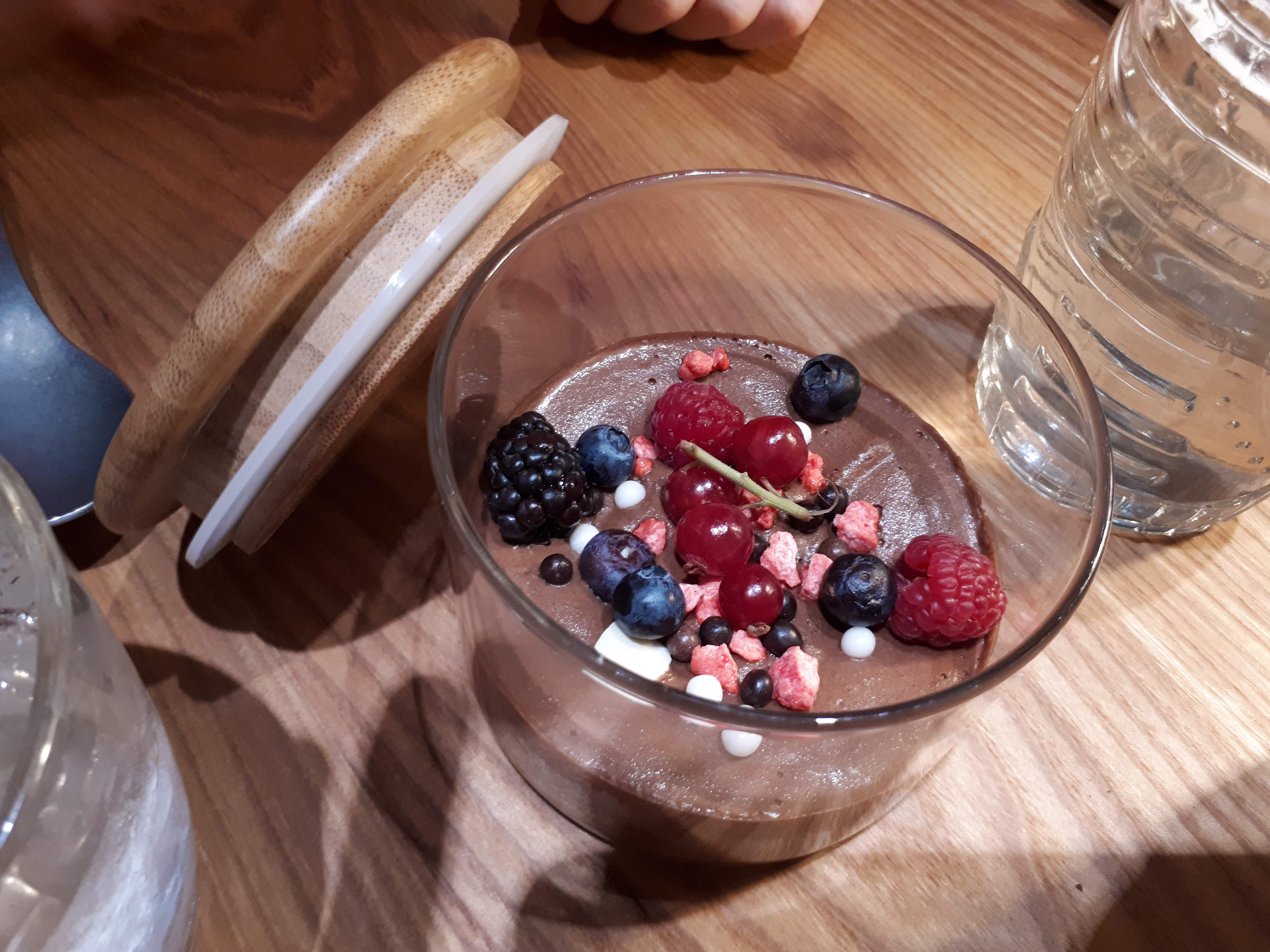 Très grand verre, toute petite assiette. Mais c'était bon. Serveuse sympa, bonne musique. Petit bémol sur les desserts de la part des autres convives. Ma mousse au chocolat était originale, peu sucrée et bien amère. Excellente. Les autres ont pris les profiteroles déstructurés, bon mais pas très joli. Pour le prix, c'est l'hôtel dieu...