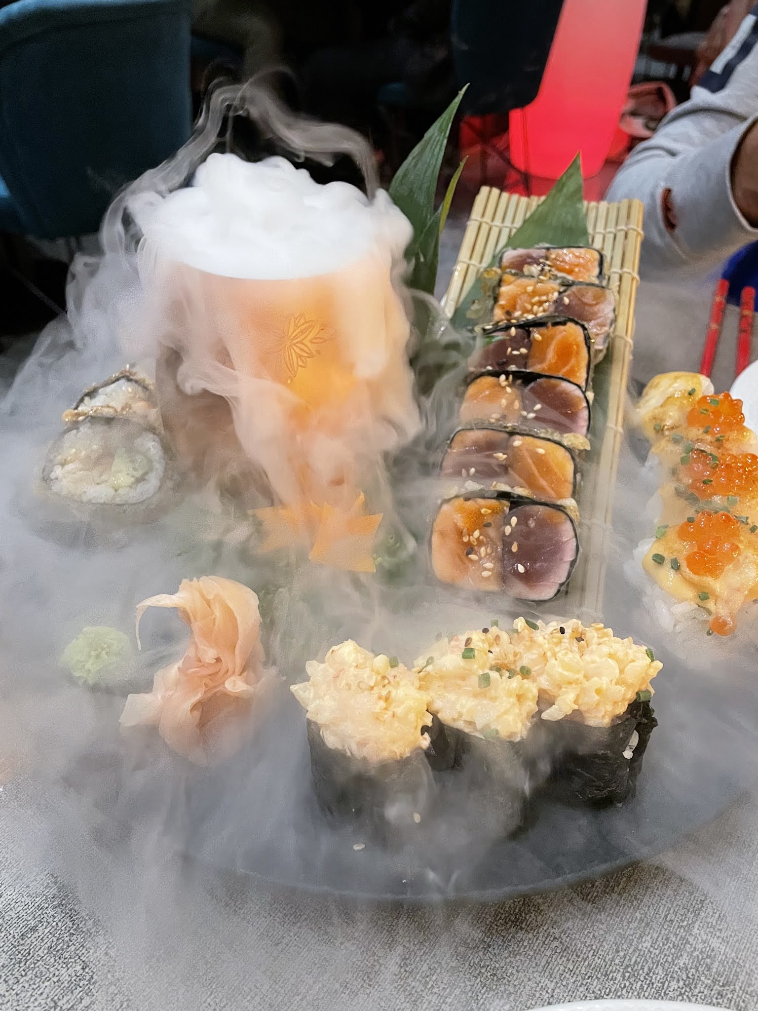 Très déçu nous étions 5 nous avions réservé les cocktails était bien mais le reste une catastrophe j'ai manger en différé des 4 autres personnes qui m'accompagner car a m'avait oublié près plusieur appelle un serveur à enfncider de venir . C'est un attrapé coouillon ne vous faites pas avoir par l'azote de bien meilleurs s sushi vous attendent ailleurs