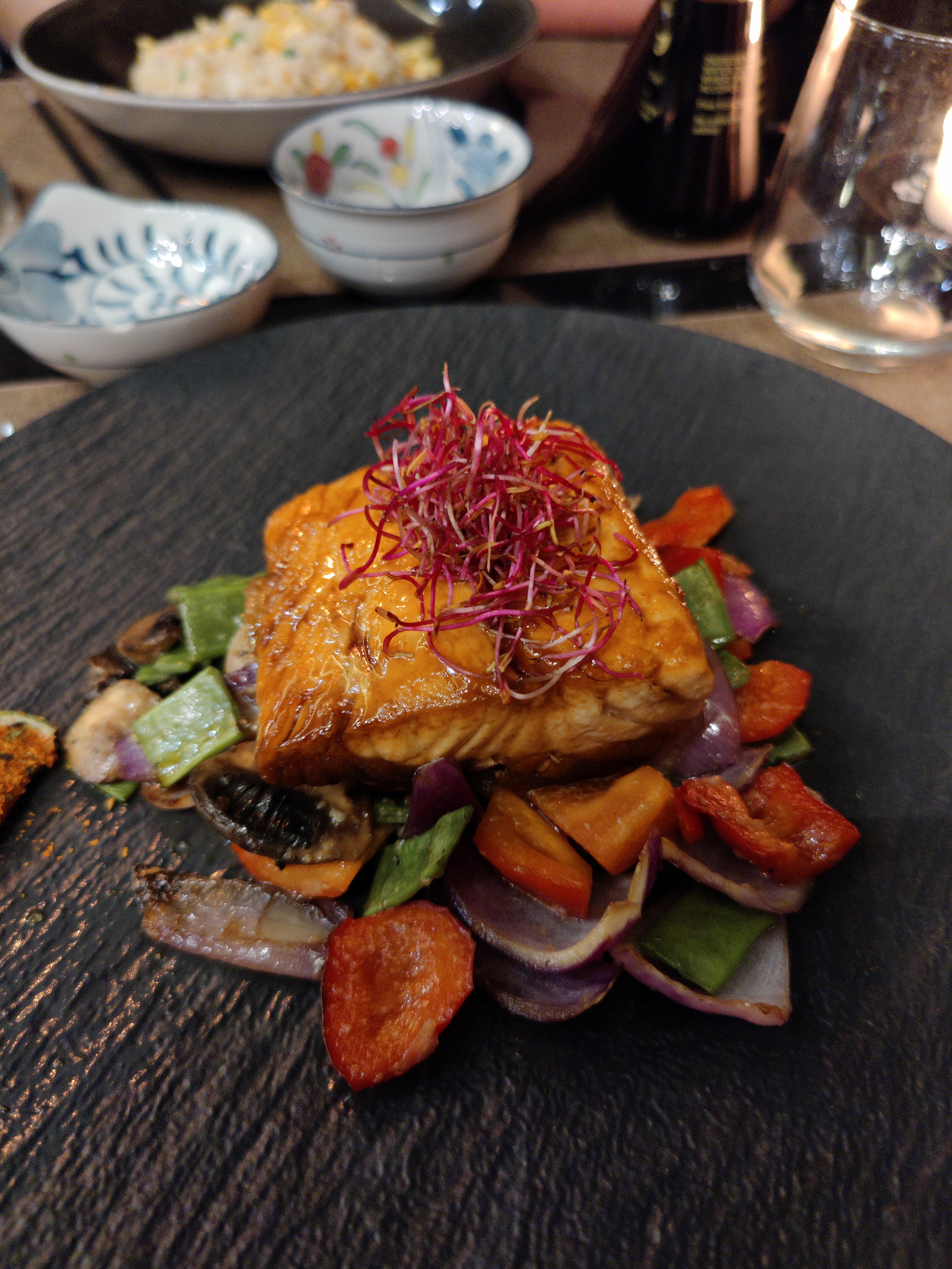 Superbe resto asiatique tant cuisine que déco ! Juste un peu déçue qu'on nous ai apporté nos cocktails après notre entrée 🤷