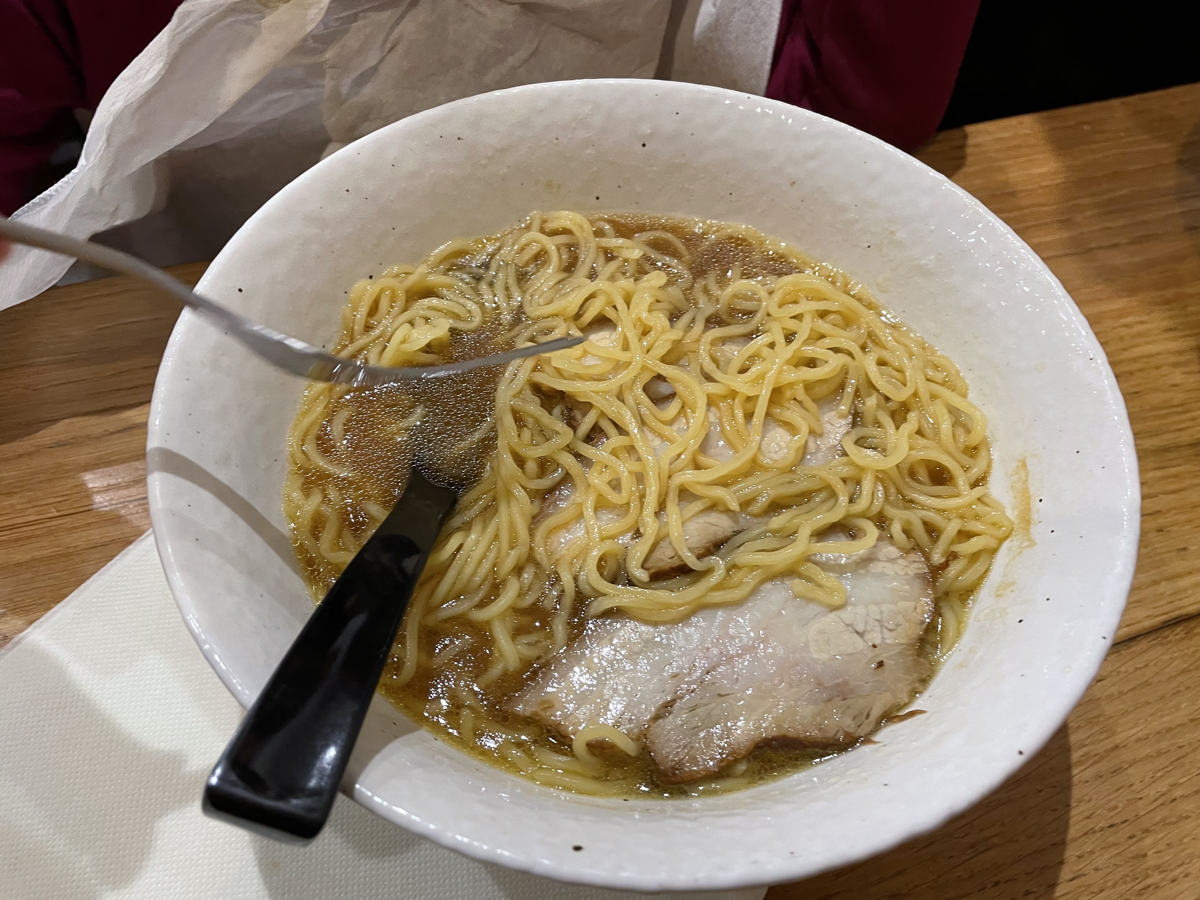 J’ai pris un tantanmen, la soupe était épicée mais trop fade à mon goût. J’ai ajouté du soya sauce mais ça reste fade. Les nouilles sont également fades parfois cela forme de gros noeuds. Il y a pourtant énormément de monde dans ce restaurant. Je ne comprends vraiment pas pourquoi.