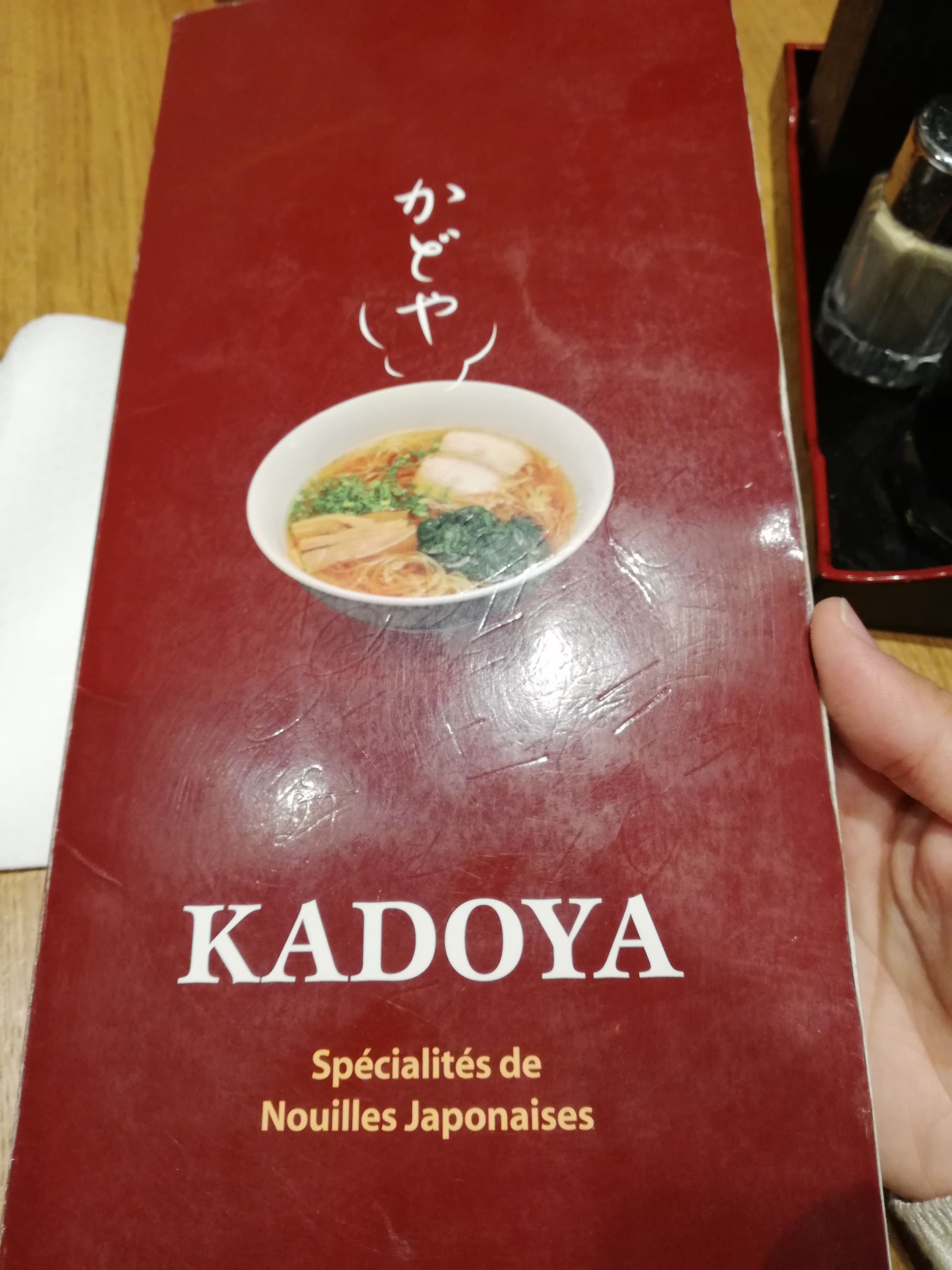 Quelle déception. Client regulier, kadoya était mon restaurant où j amenais tous mes amis provinciaux. Mais ce soir quelle déception. Soupe tiedasse. Gyozas secs. Ramens insipides. .. bref ce n est plus ce que c etait. Gros laissé aller sur la propreté également. Ça n est pas normal de donner des cartes sales en debut de service... je passerai mon chemin la prochaine fois. Comme quoi des clients reguliers on peut les perdre très facilement.