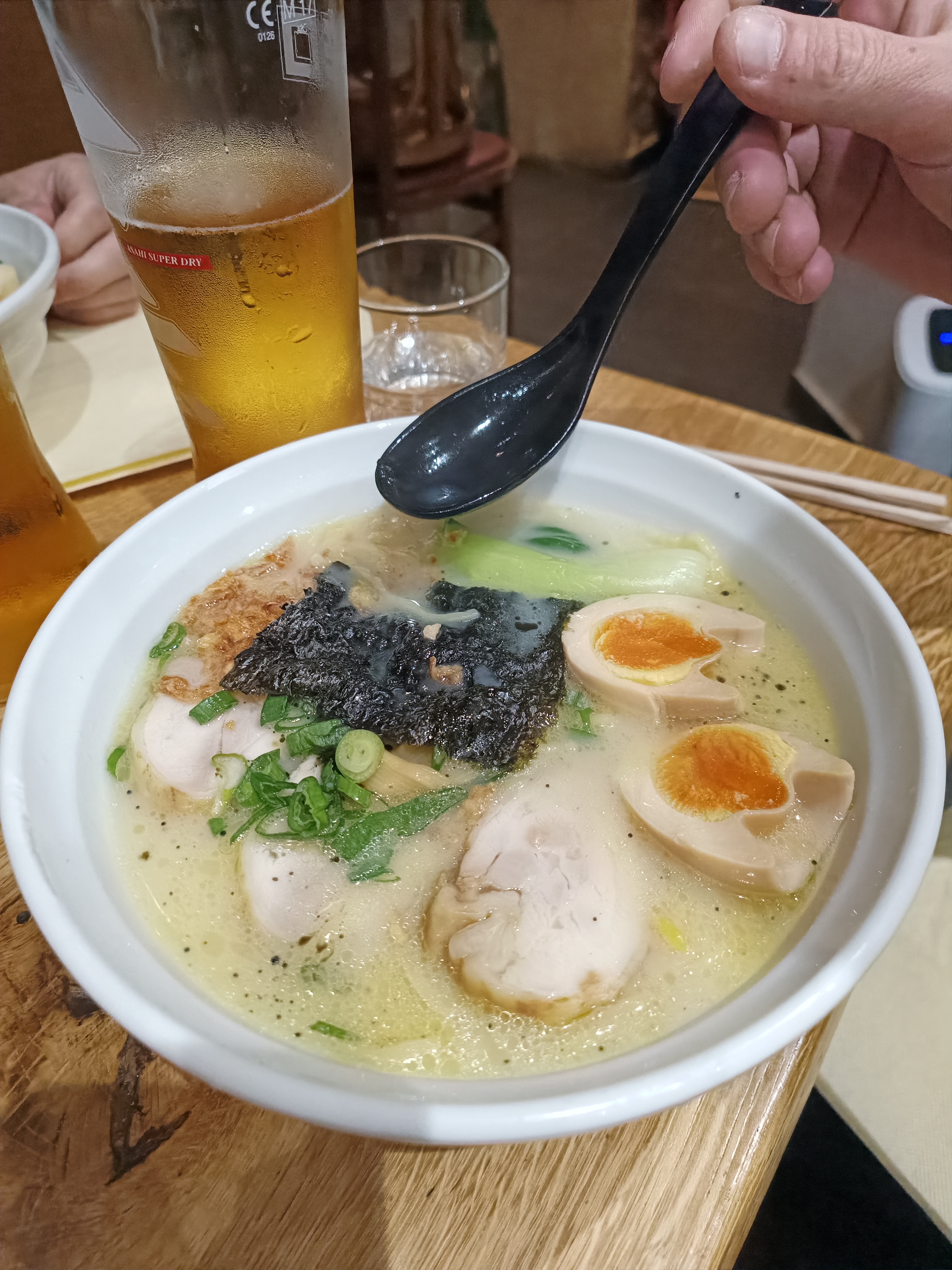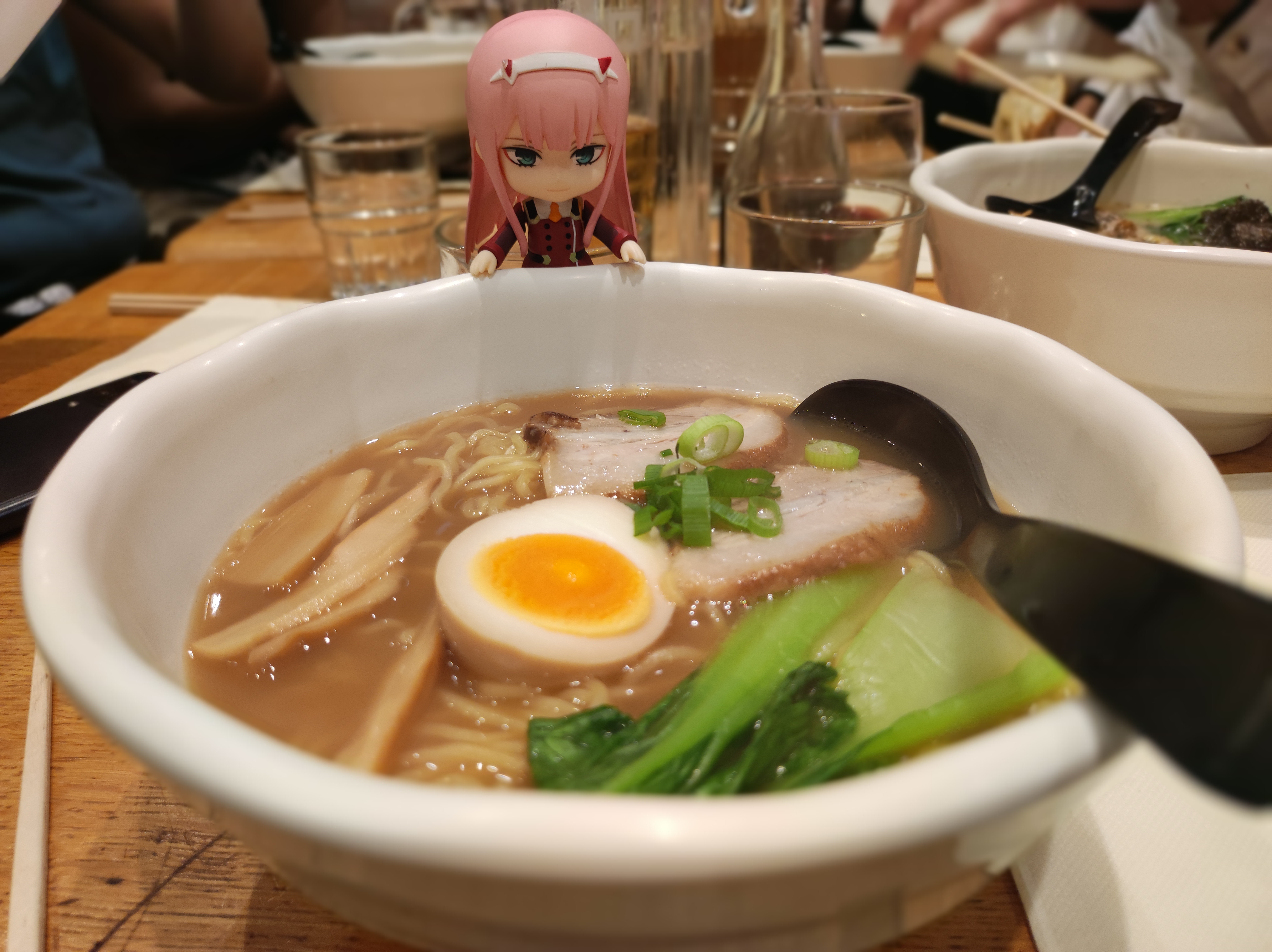Avec des amies nous avons été manger dans ce restaurant, qui était bien rempli, un grand merci au patron qui nous a laissé rentrer à 10 (avant le nouvel an c'était sûr 😆). J'ai pris une bière pression Asahi, je suis fan🥰 Pour le plat j'ai pris Shoyu Ramen, vraiment très bon 😌 Merci aux serveurs pour leur gentillesse et de leur service. Note pour Zero-Two : 🌸🌸🌸🌸🌸