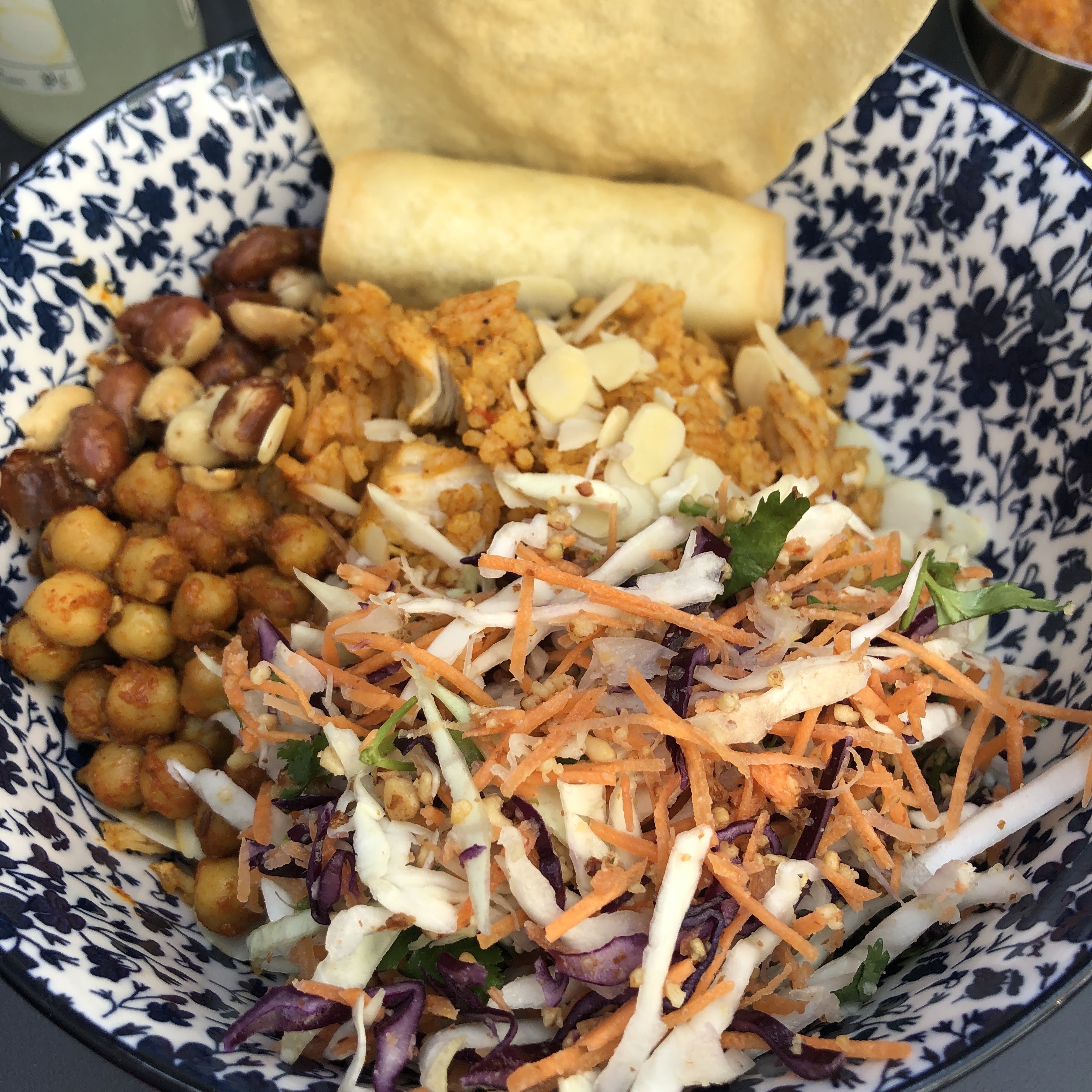 Moment très agréable sur la petite terrasse très colorée et fleurie, à déguster une assiette de différents mets très savoureux et parfumés, certains épicés d'autres non. Dès L'accueil on sait que l'on va se détendre : gentillesse, prévenance, calme...Une adresse découverte par hasard que je partagerai volontiers autour de moi. Parfait pour les petits budgets.