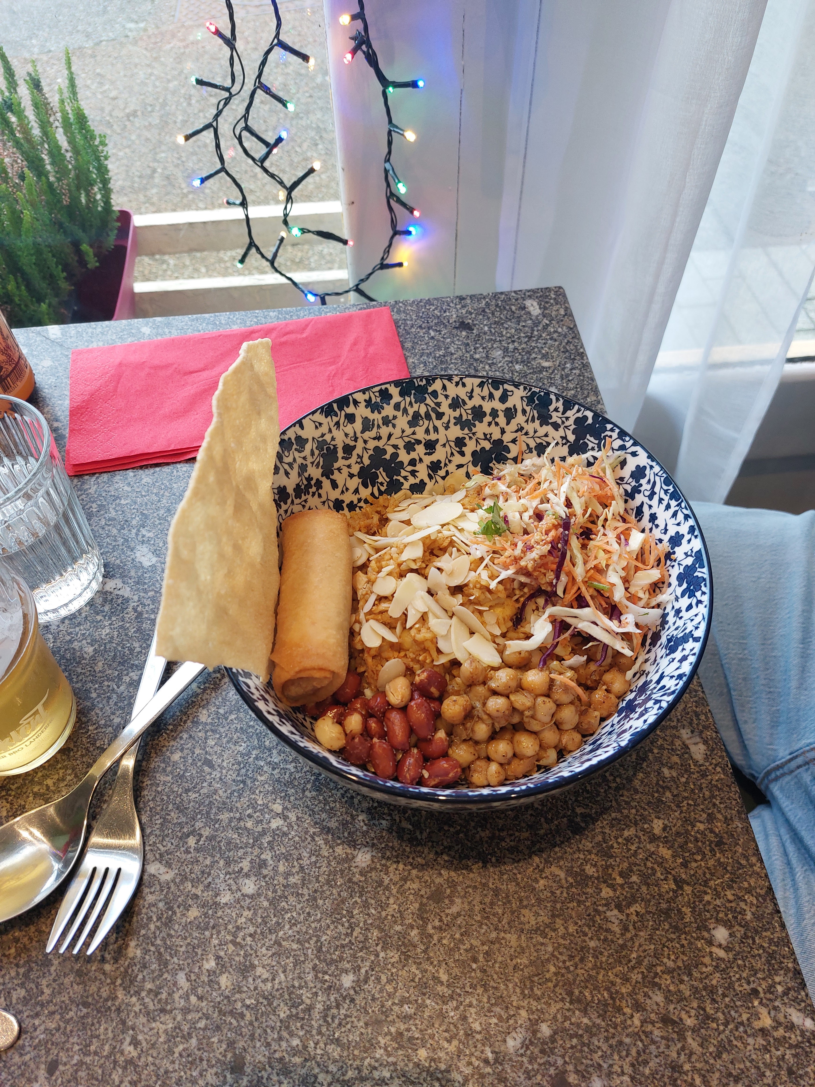 Leur thalis vegan avec un chai ou un hibiscus est devenue ma source sûre ! Kafé mignon et chaleureux✨️Le gérant et les employés sont d'une gentillesse qui fait du bien 😁