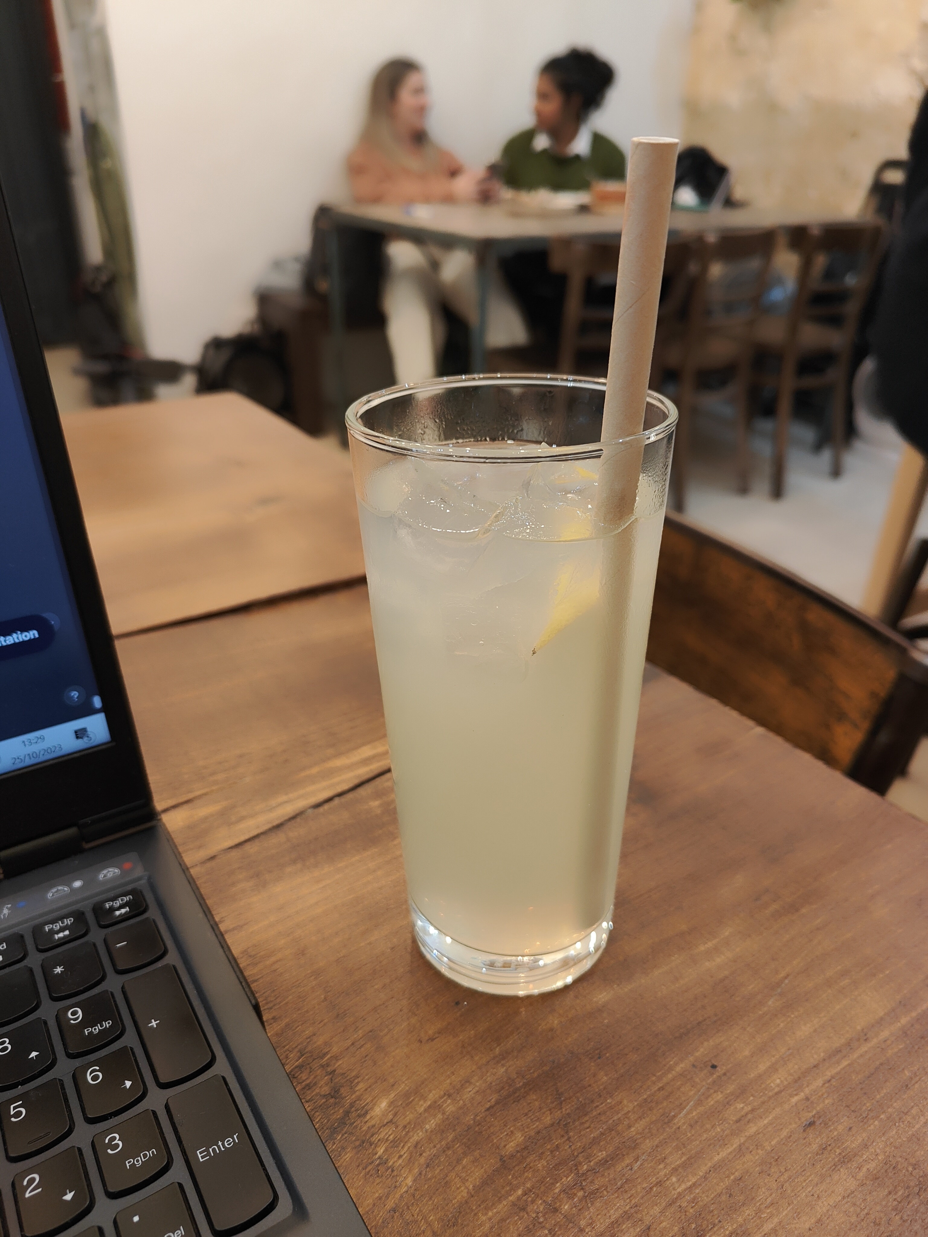 Très bonne citronnade , et café froid . J’ai pris également une part de cake aux amandes . Délicieux . Vous pouvez venir avec votre ordi pour travailler . Endroit conviviale
