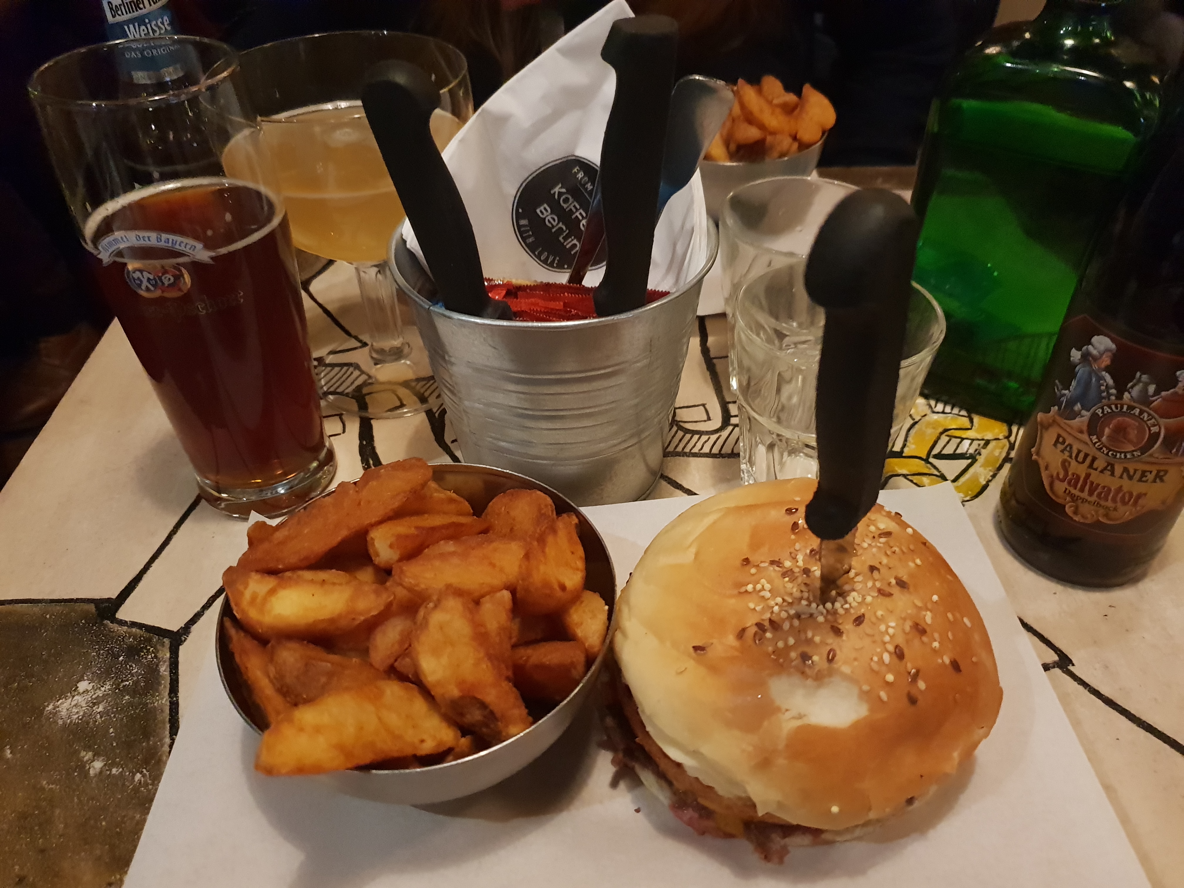 Etant moi-même allé à Berlin, j'ai trouvé l'ambiance très sympathique et vivante. Le personnel était super agréable et accueillant. Une carte des boissons très originales notamment concernant les bières ! Les burgers sont supers et les potatoes sont vraiment bonnes et croustillantes ! Je recommande vivement !