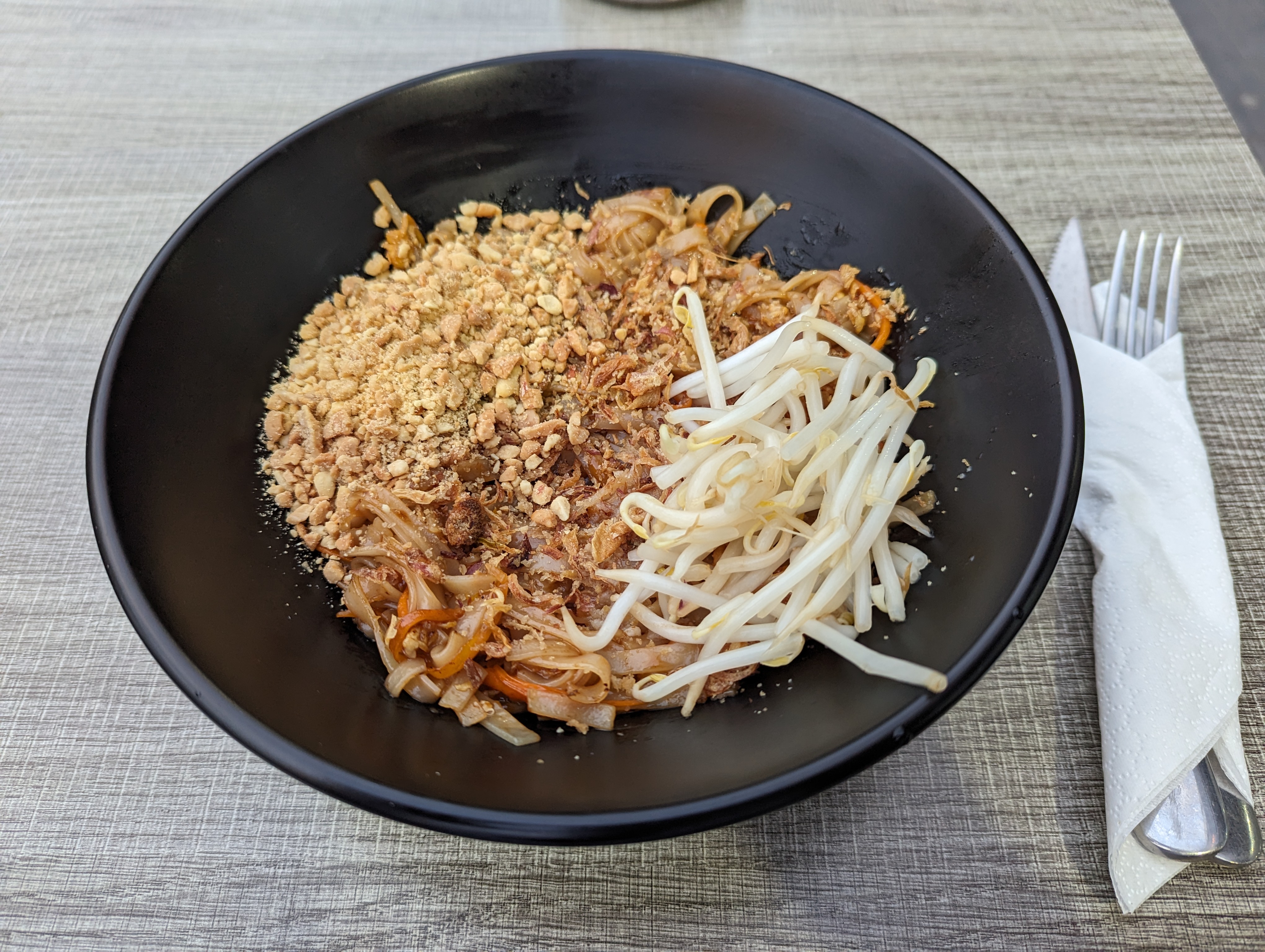 Une salle et une terrasse assez propres. Un choix de plats asiatiques ou américains (des burgers...), pourquoi pas. Un accueil bon sans plus. J'ai goûté les pad Thai aux crevettes, au poulet et au bœuf. Les pâtes sont bonnes et la sauce suffisante. Il manque un peu de coriandre. Il y a 6 ou 7 crevettes de petite taille (ce qui est assez généreux), la viande est plus présente mais mais pas meilleure. Un défaut : il y a souvent trop de cacahuète. Le plus : un excellent rapport qualité prix. Idéal pour manger chaud sur le pouce !