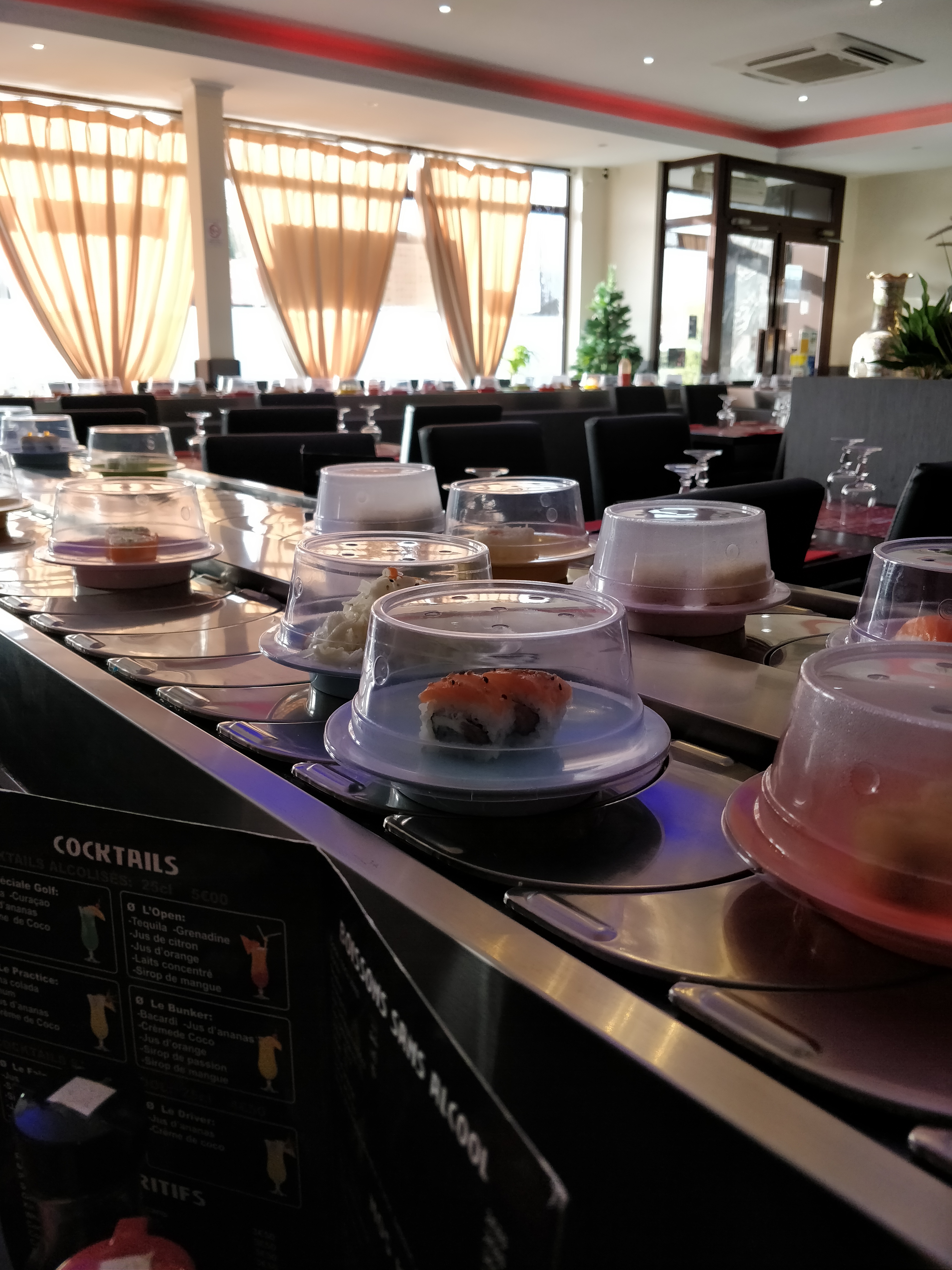 Très bon acceuil, système de tapis roulant génial Approvisionnement régulier sur tapis et possibilitée de demander aux serveurs donc Super 5/5