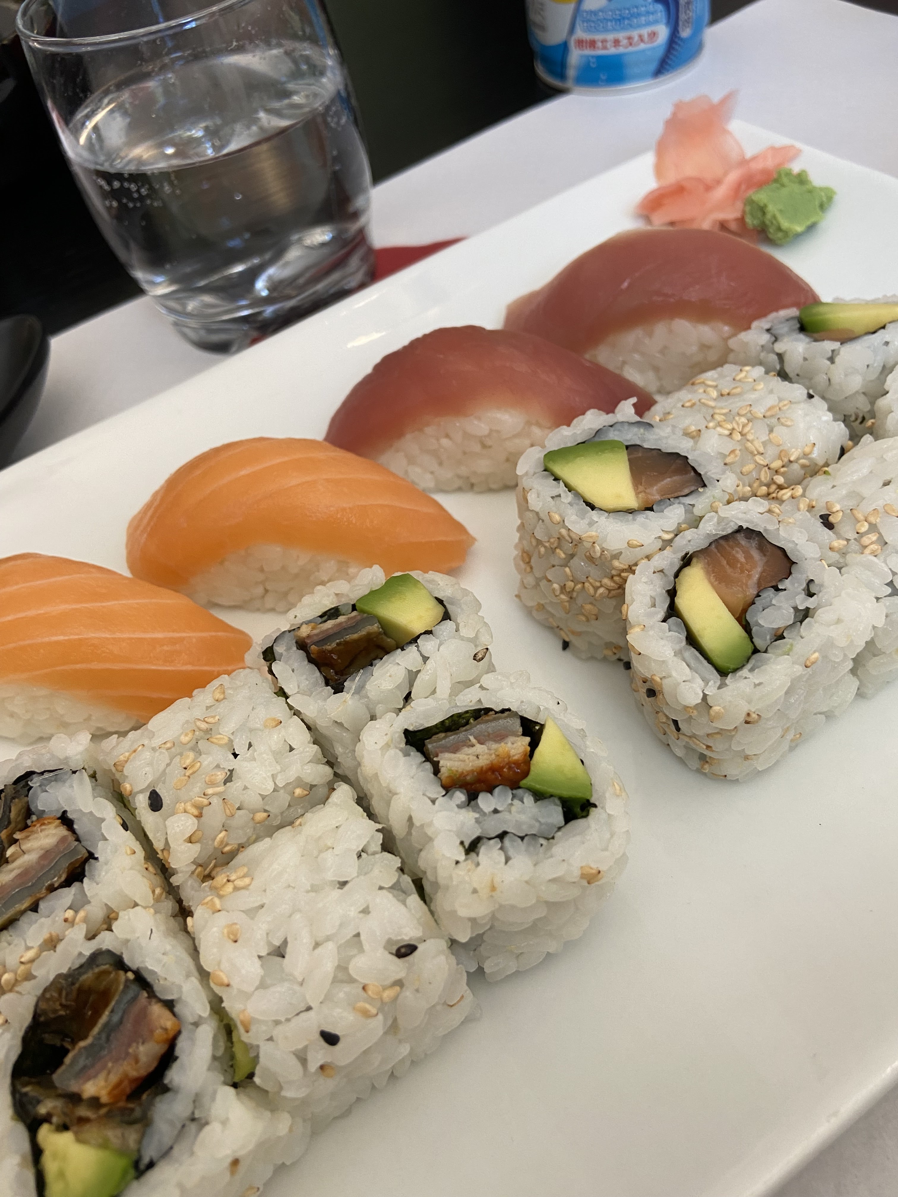 J'ai bien-aimé venir manger dans ce resto. De plus, ils ouvrent à partir de 11h30 pour le déjeuner. C'est pratique. Les sushis sont bons. Il en est de même pour les california. Il y a peut-être un petit bémol concernant la cuisson du riz. A on goût, c'était un peu trop cuit. Mais bon, c'est mes goûts. La soupe est rarement bonne dans les resto. Celui ci ne fait pas exception. Par contre, la salade de choux m'a bcp plu. Les brochettes étaient très bonnes aussi. Les boulettes de poulets étaient aromatisées un peu différemment. Pas mauvais mais pas mon trip.