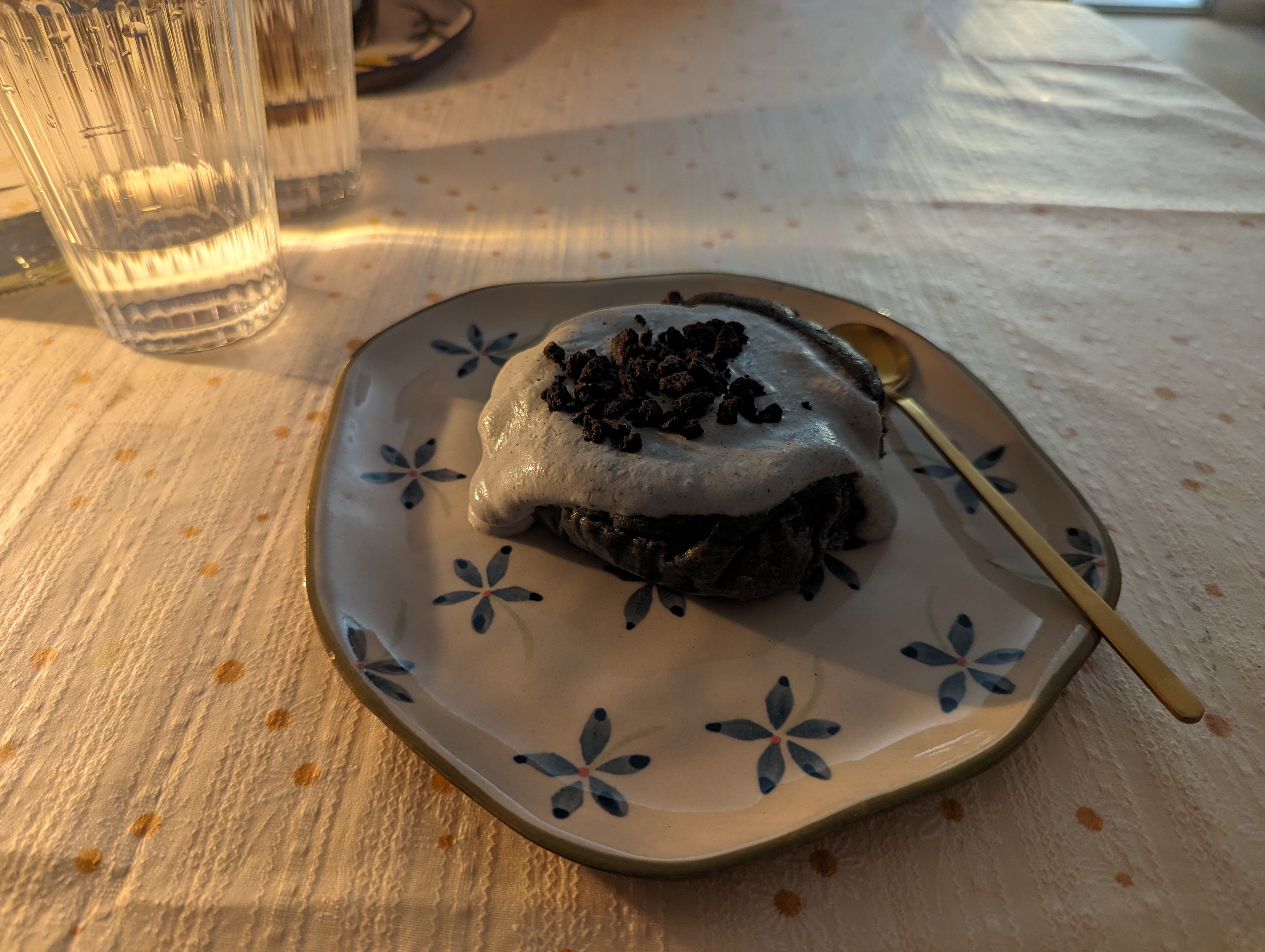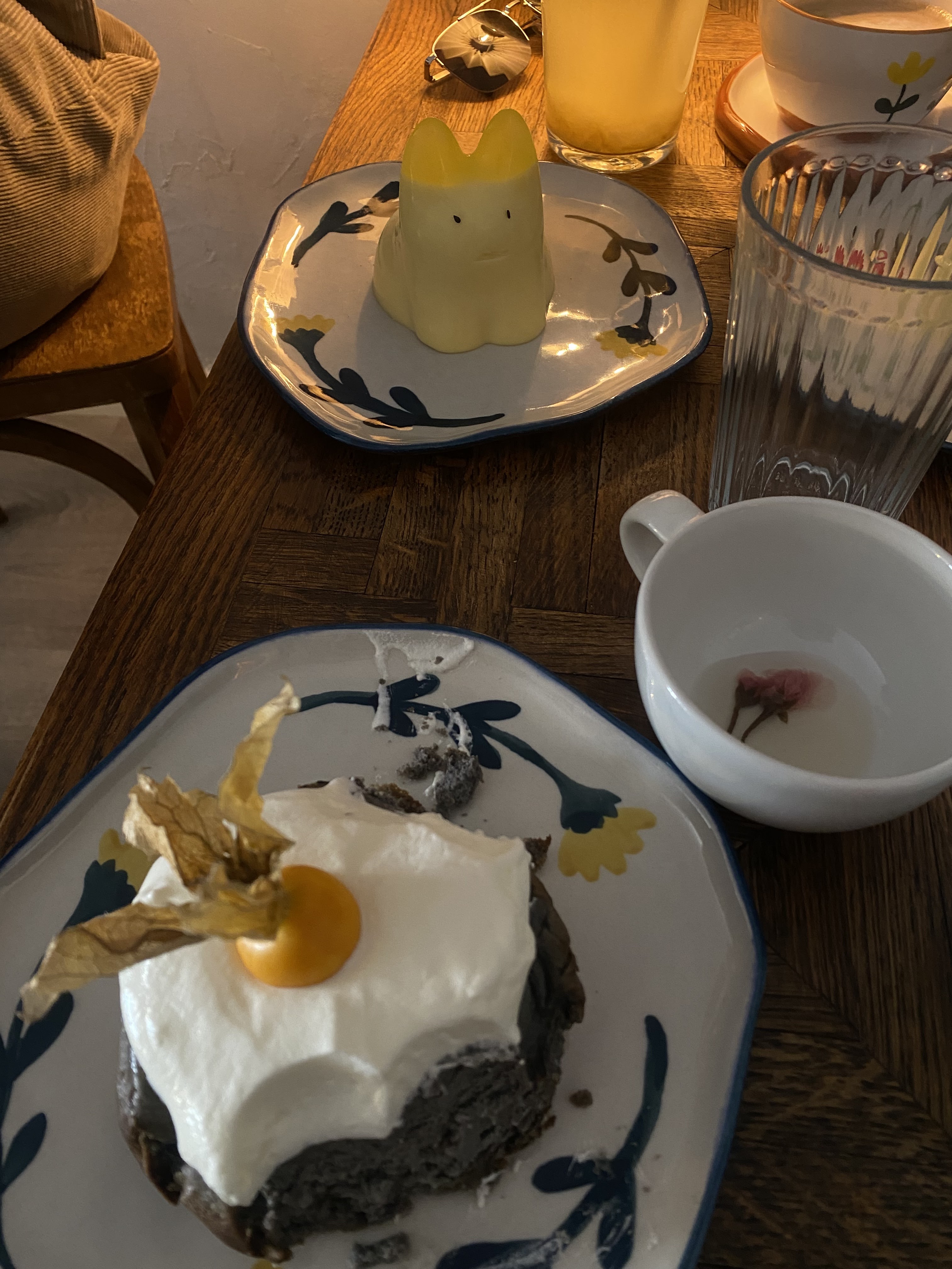 Je me suis arrêtée pour un moment dessert, cheesecake au chocolat et matcha latte. Tout était très très bon, le personnel est accueillant et chaleureux et le lieu est mignon et lumineux !
