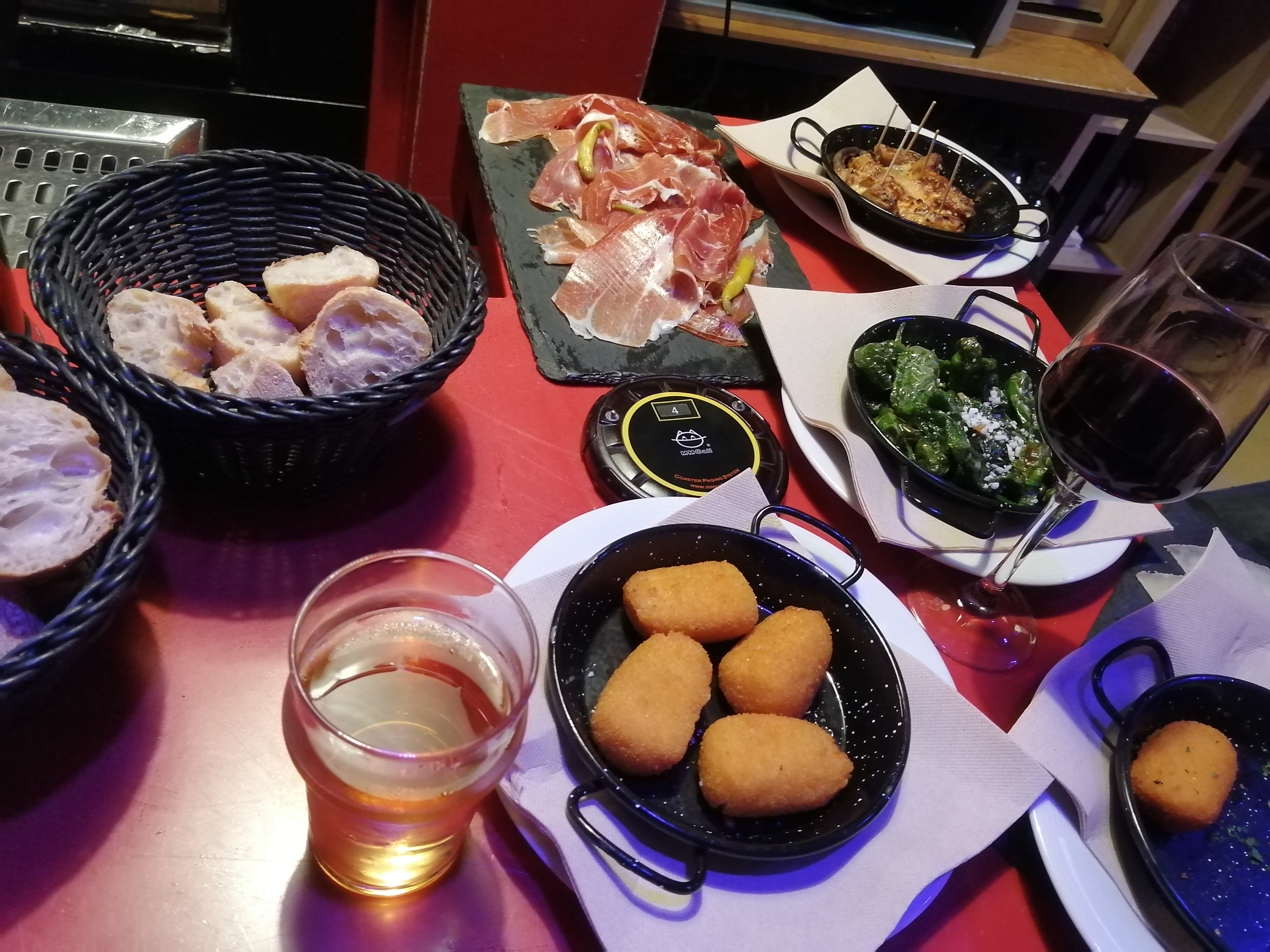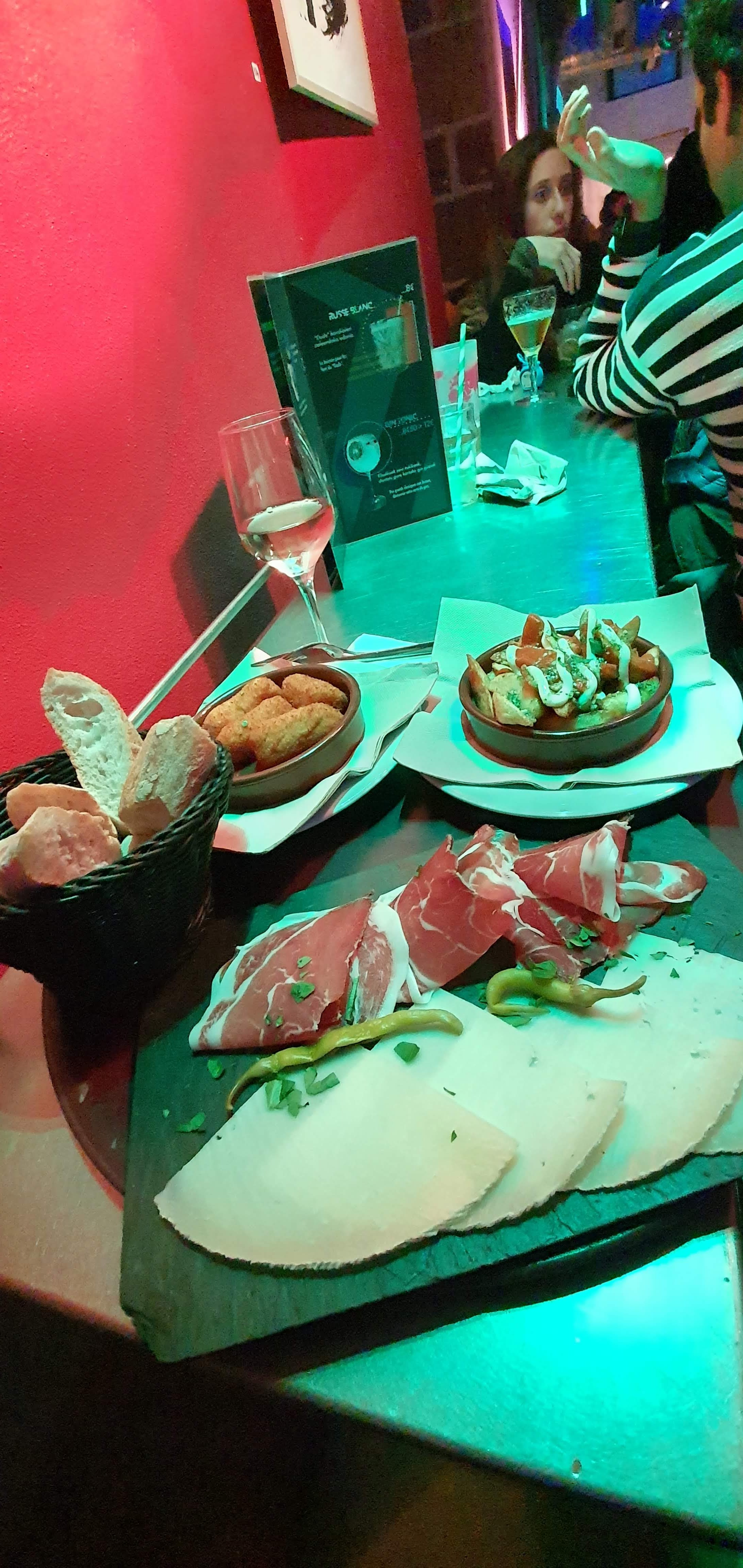 Nous avions réservés pour un EVJF , avec deux formules tapas buffet . Rien a dire , serveur sympathique, très patient et commerçant ! Nous en gardons un excellent souvenir , n'étant pas de Bayonne nous avions peur de ne pas y trouver notre bonheur, mais nous y avons trouvé les tapas , l'apéro et l'ambiance et la bonne humeur. C'est tout ce que l'on demandé.