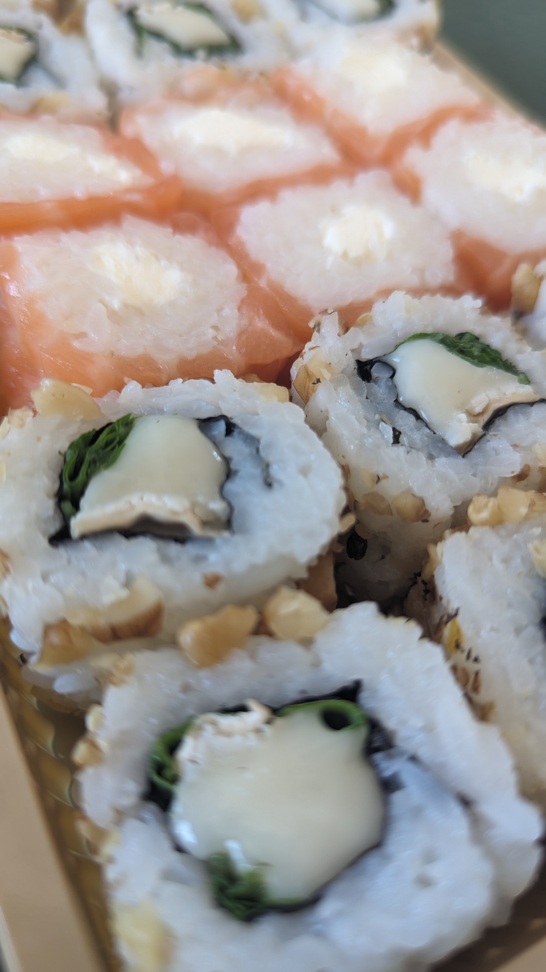 Je suis très déçue. Je commande des sushis avocat saumon fromage. A mon arrivée je constate qu il manque l avocat. Le cuisinier dit à la gérante : ca doit être sous le fromage... on me rend la commande et voilà. Je vais dans ma voiture et en effet il manque l avocat donc y retourne et et on me refait mes sushis mais bon si je n avais pas vérifier ben je serai rentrée chez moi sans l avocat. C est dingue de tjs avoir a vérifier surtout quand on le dis juste avant qu il y a une erreur. Certes ma commande a été refaite mais bon si je n avais pas vérifié il m arrais manque des choses alors que je l avais signalé.