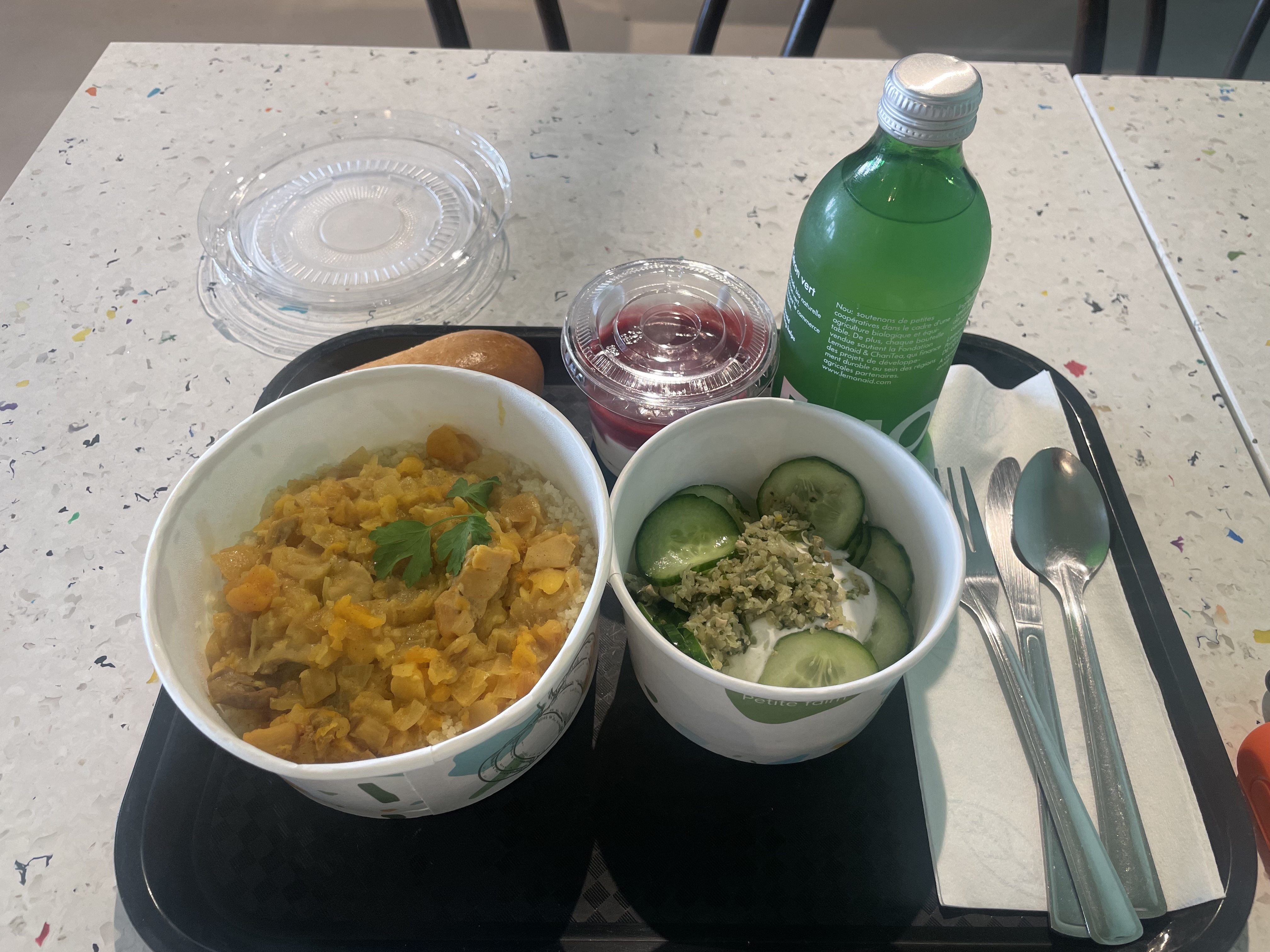 Équipe au top ! J’adore le concept, et le fait de privilégier les producteurs ! Tout est frais ! J’ai pris un tajine de poulet vraiment top, avec des citrons confits super original et bien assaisonné ! En entrée une salade de concombre 🥒 au top ! Tout est frais ! En dessert un fromage blanc avec coulis framboise ! Top Je recommande ! 😉 merci à vous !