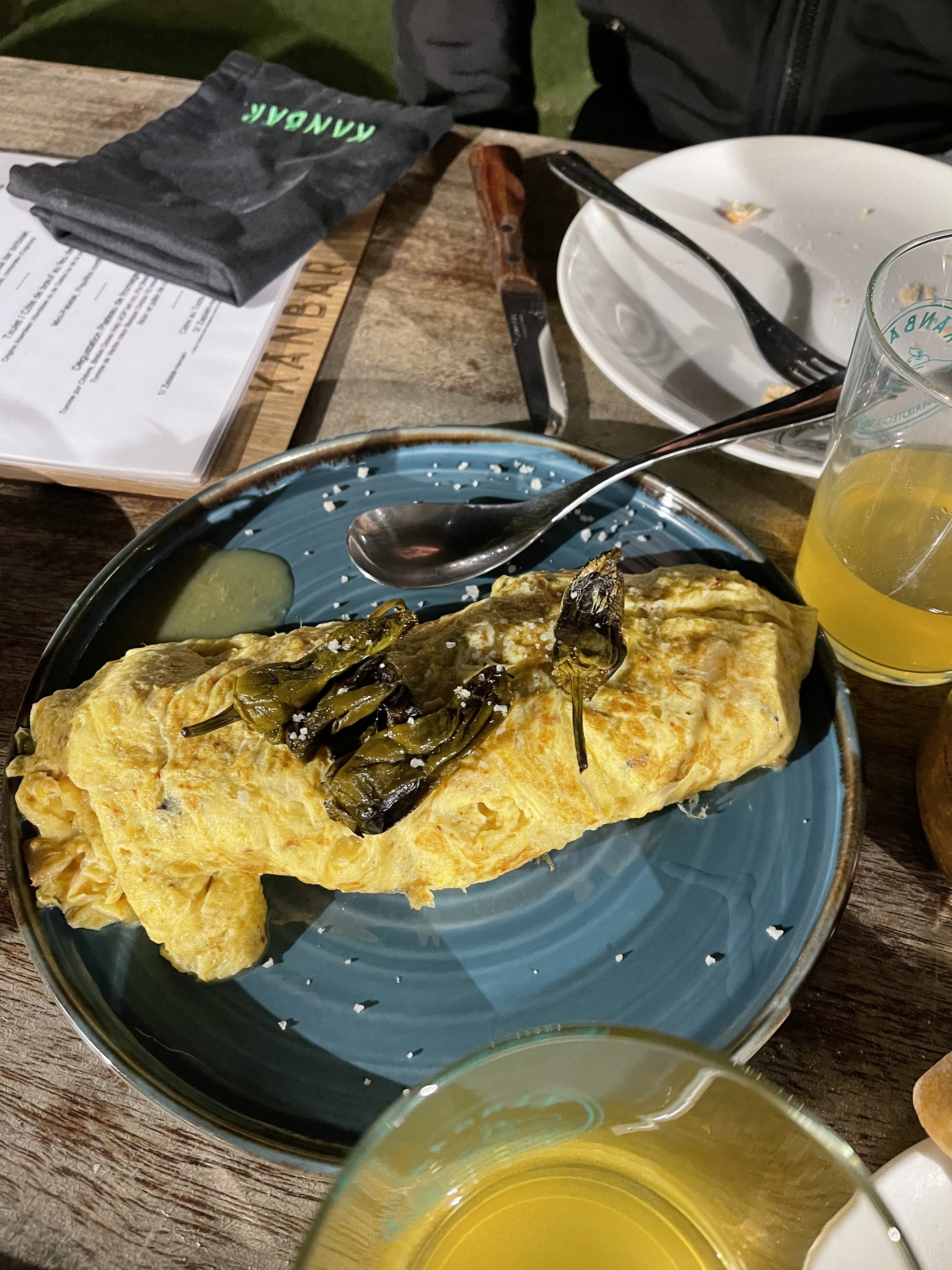 Nous avons passé un excellent repas ! Les Xistora déglacés au cidres sont tellement bonnes, mais ce n’est qu’une mise en bouche pour ce qui nous attend après, omelette parfaitement baveuse, côte de bœuf grillée comme il faut, et un le cidre à volonté dont on peut aller se servir soit même directement au tonneau ! Bref une expérience inoubliable, tant pour l’accueil du personnel que pour les saveurs qui nous en mettent plein la vue !