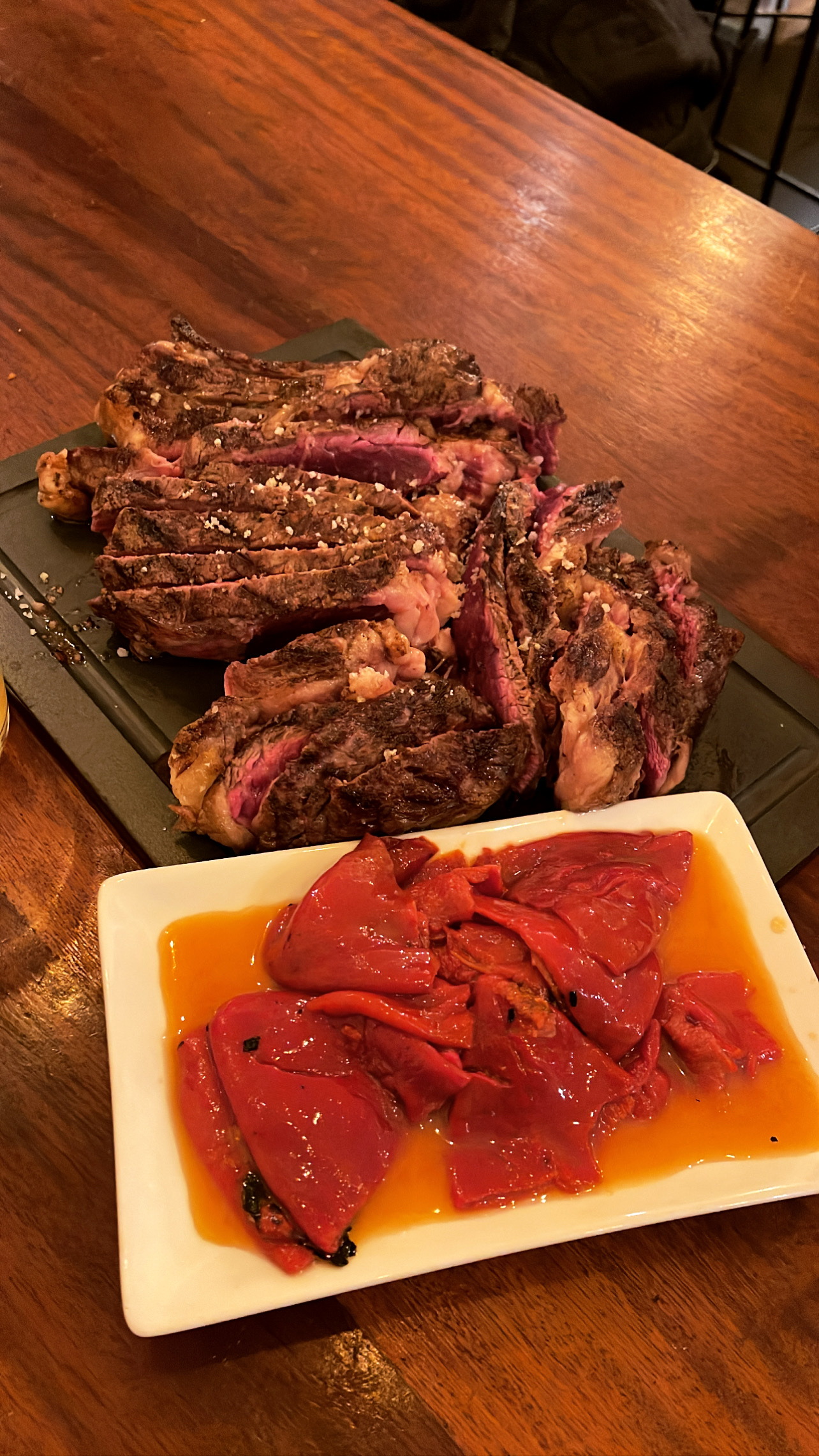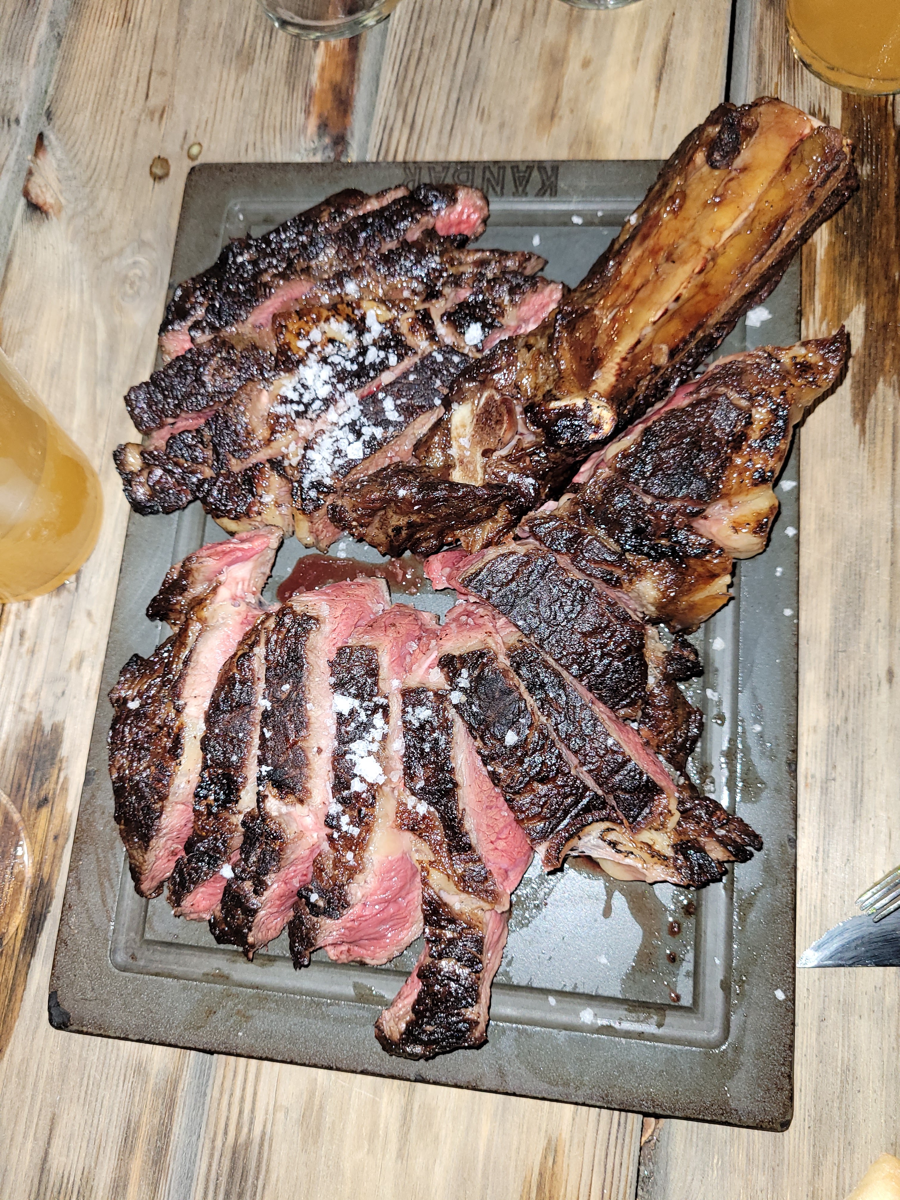 Nous étions une table de 6 adultes et un enfant de 3 ans! L'avantage c'est qu'il y à la place pour les grand groupes ( et nous n'avions pas réservés ) Les cuissons des côtes de bœufs ont étaient parfaites. Les deux jeunes serveurs qui nous ont servi étaient très professionnel et accueillant. Très très bon rapport qualité prix !