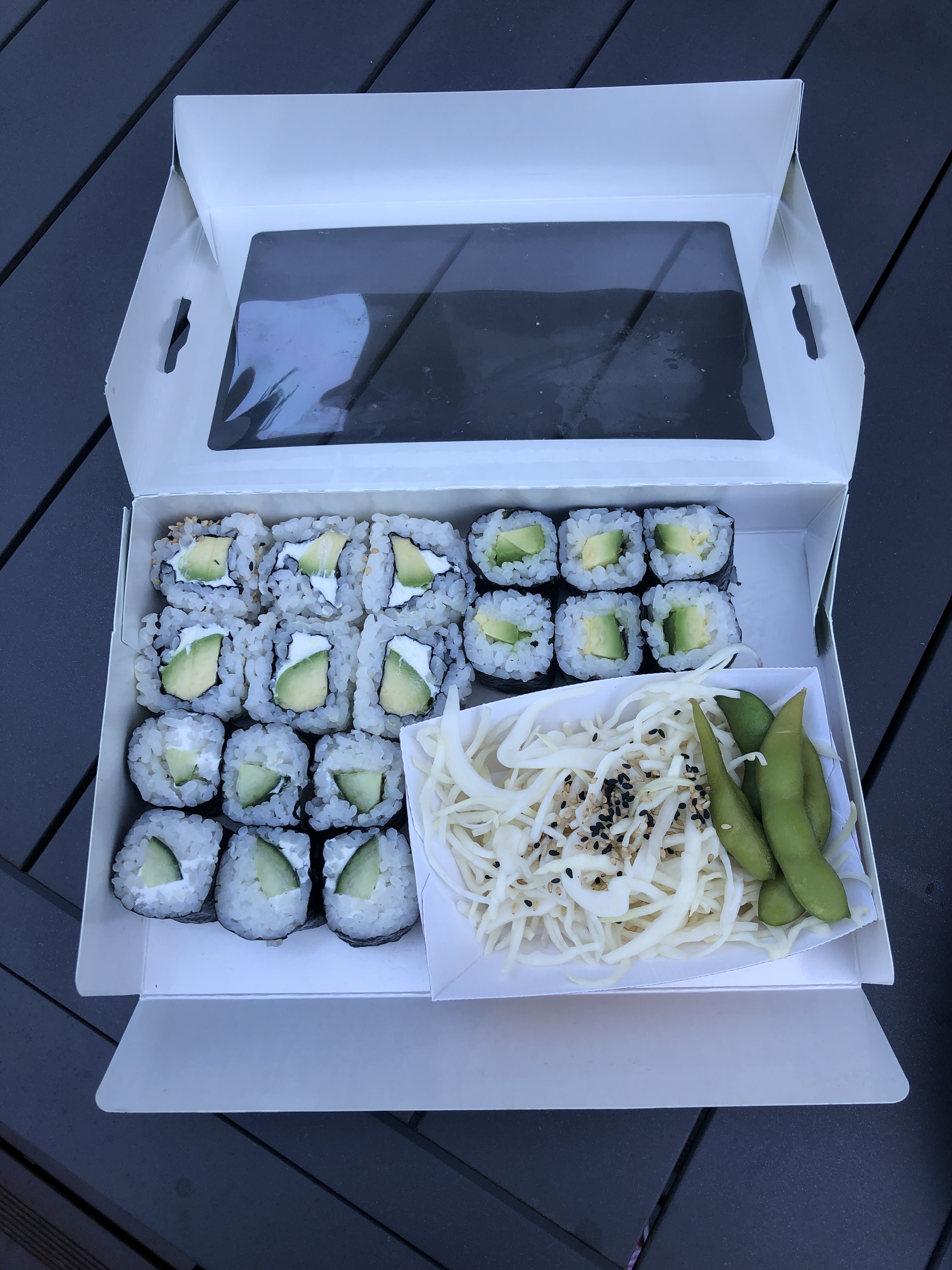 Déjeuner parfait ce midi! Sushi mangue/crevette, california poulet teriyaki avocat, un délice! Et bien sûr leur salade d'algues qui est excellente. Merci à toute l'équipe, c'est toujours aussi bon!