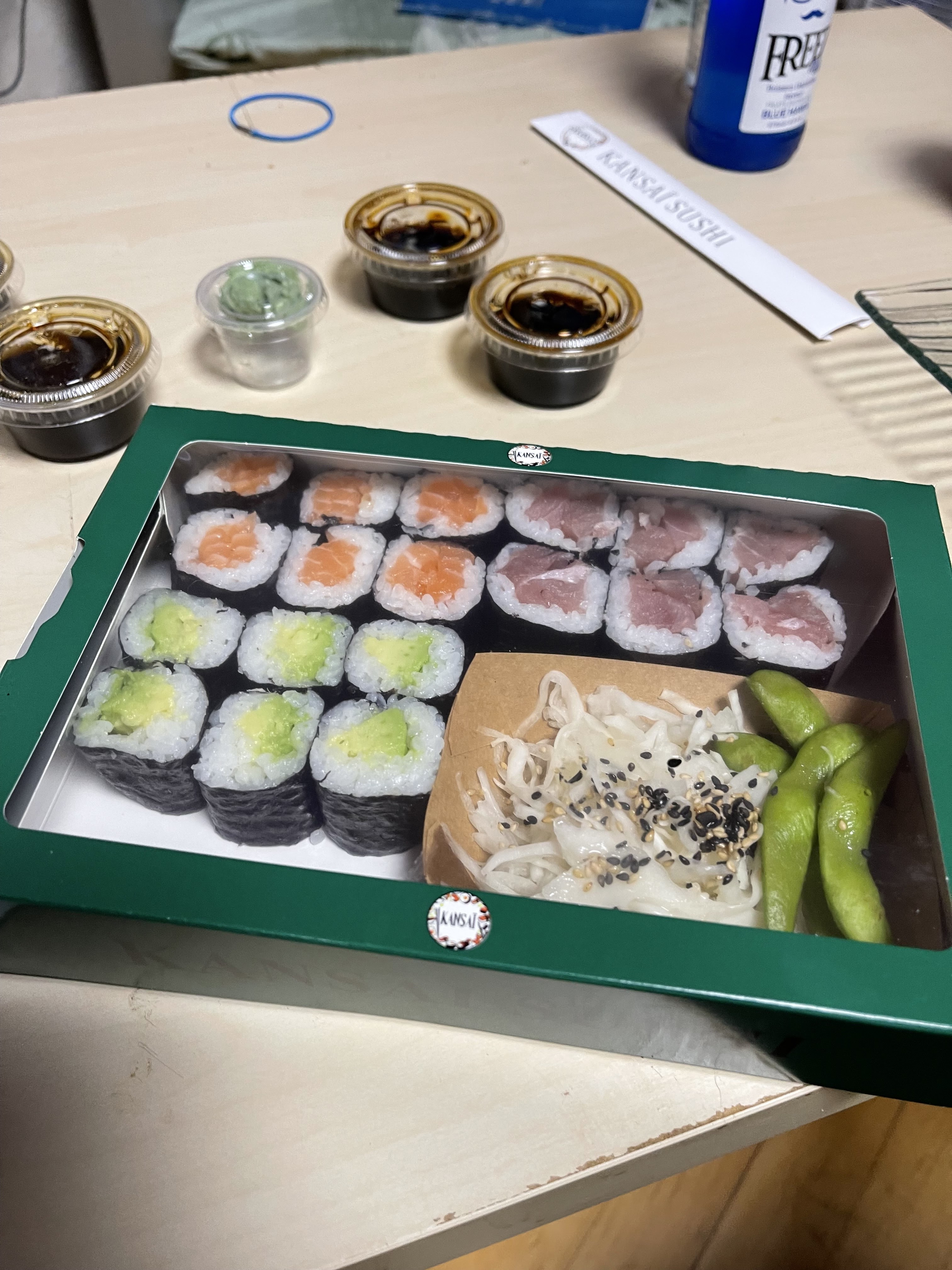 Les sushis sont bons et bien servis. Nous avons essayé plusieurs de leur box et sommes restés sur la box à 60 euros qui permet d'avoir un assortiment varié des différents sushis et makis. Le personnel est aimable et attentionné. Les petits points négatifs: on regrettera qu'il n'y ait pas box avec des spring rolls ou qui varient dans le temps. Et un gros bémol sur le prix: le même type de box est 12 euros moins cher si on est prêt à faire quelques kilomètres en voiture.