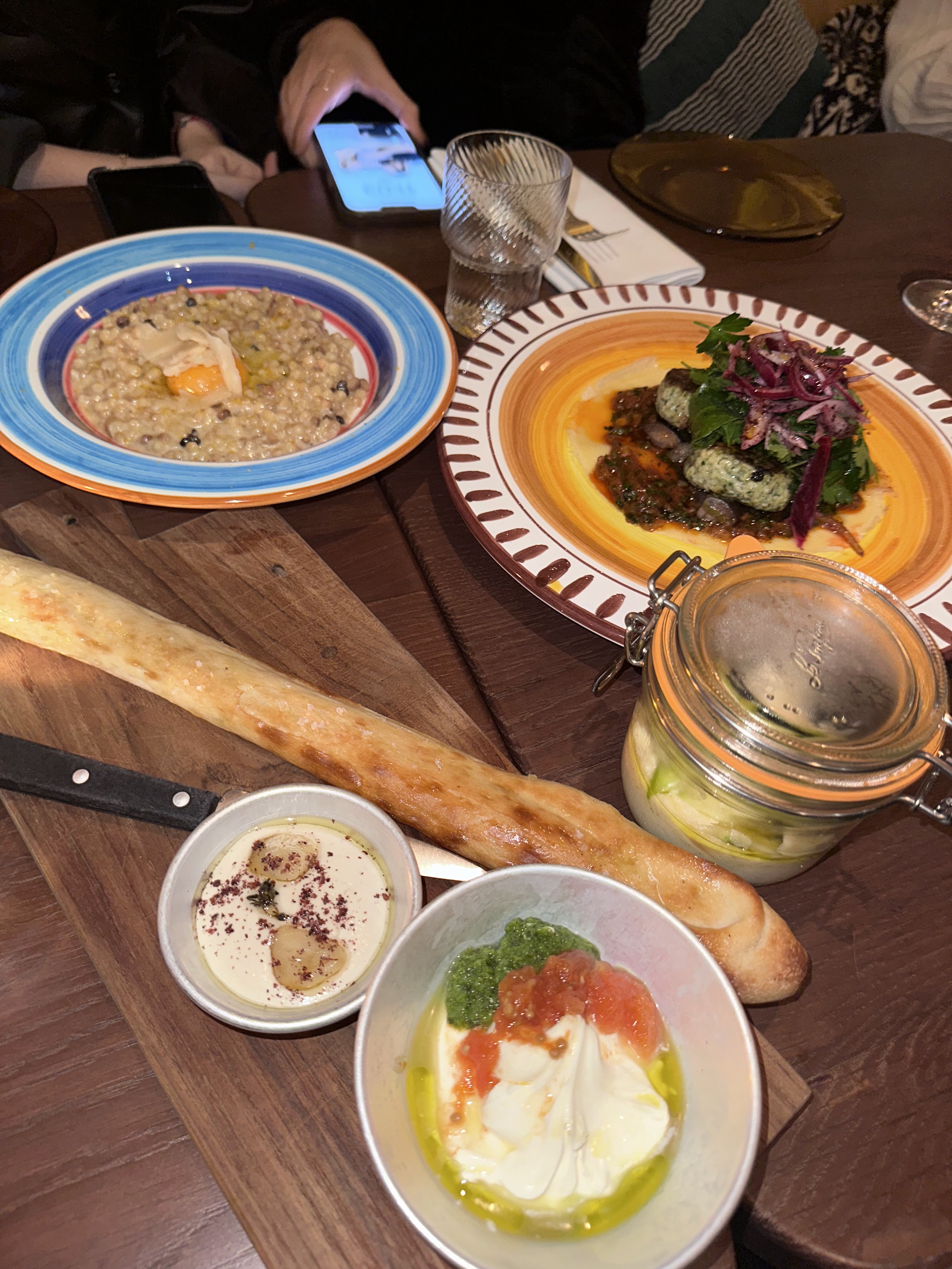 Nourriture spectaculaire dans une ambiance animée et bonne ambiance. J'ai apprécié la polenta aux champignons et aux asperges ; bar poêlé; et un dessert très créatif appelé snickers écrasés. Le personnel est sympathique.