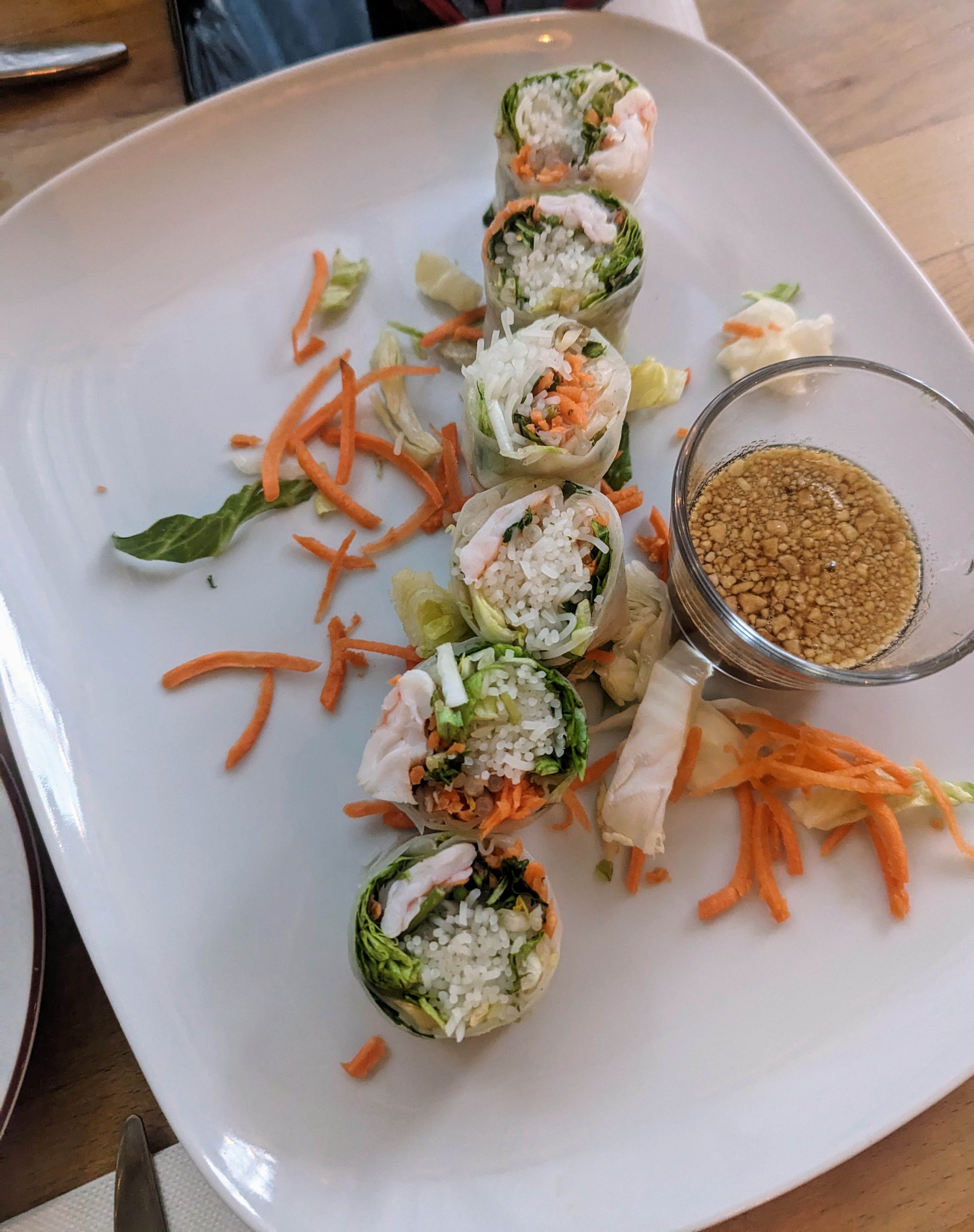 Cuisine thai très savoureuse. Serveur agréable et a l'écoute. Service un peu lent mais le restaurant était plein et il semblait être le seul à servir.