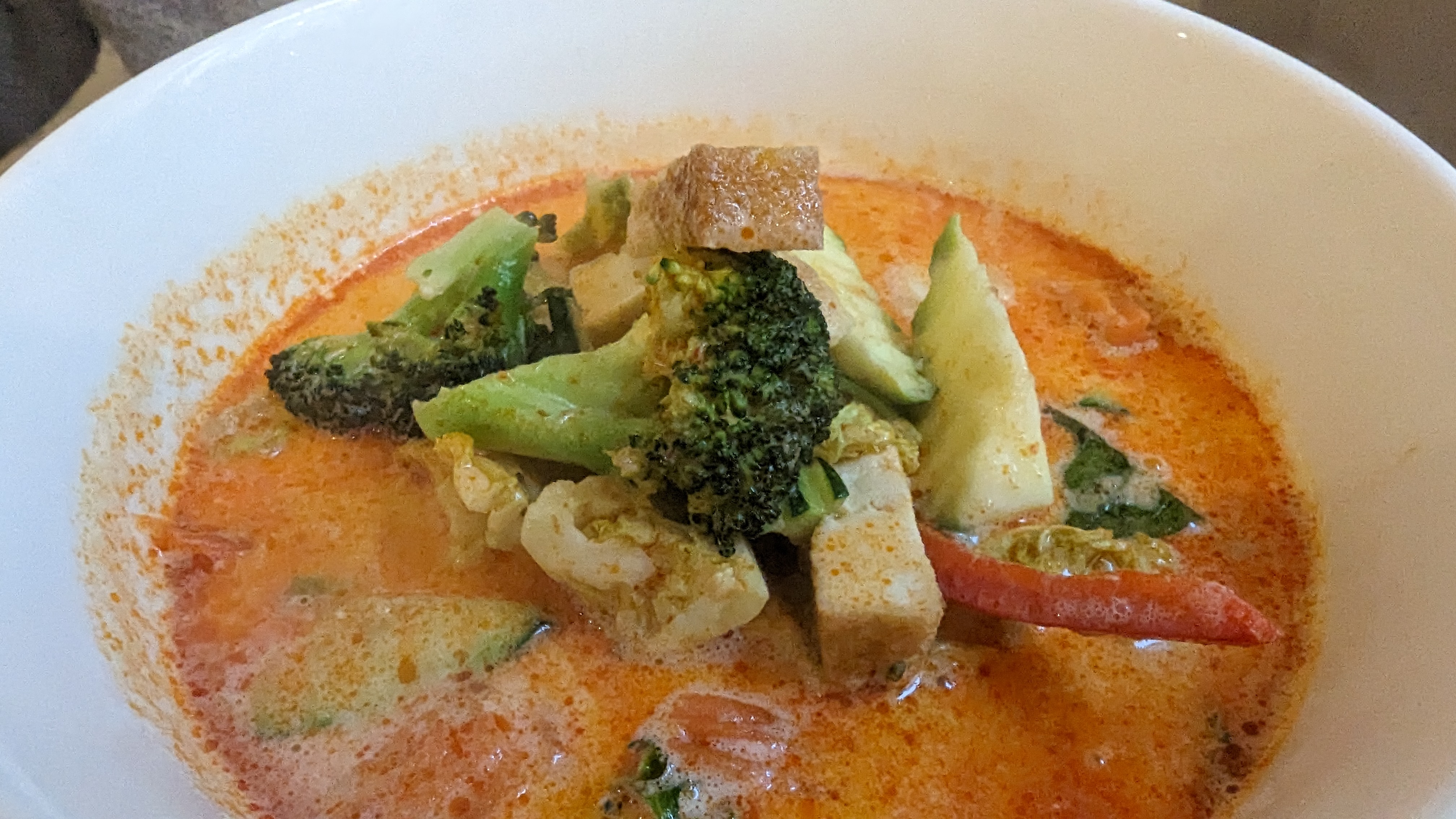 Excellent Thaï, bonus que ça soit sans gluten Le curry vert végé est vraiment excellent, on y retrouve vraiment le goût particulier des vrais curry thaï