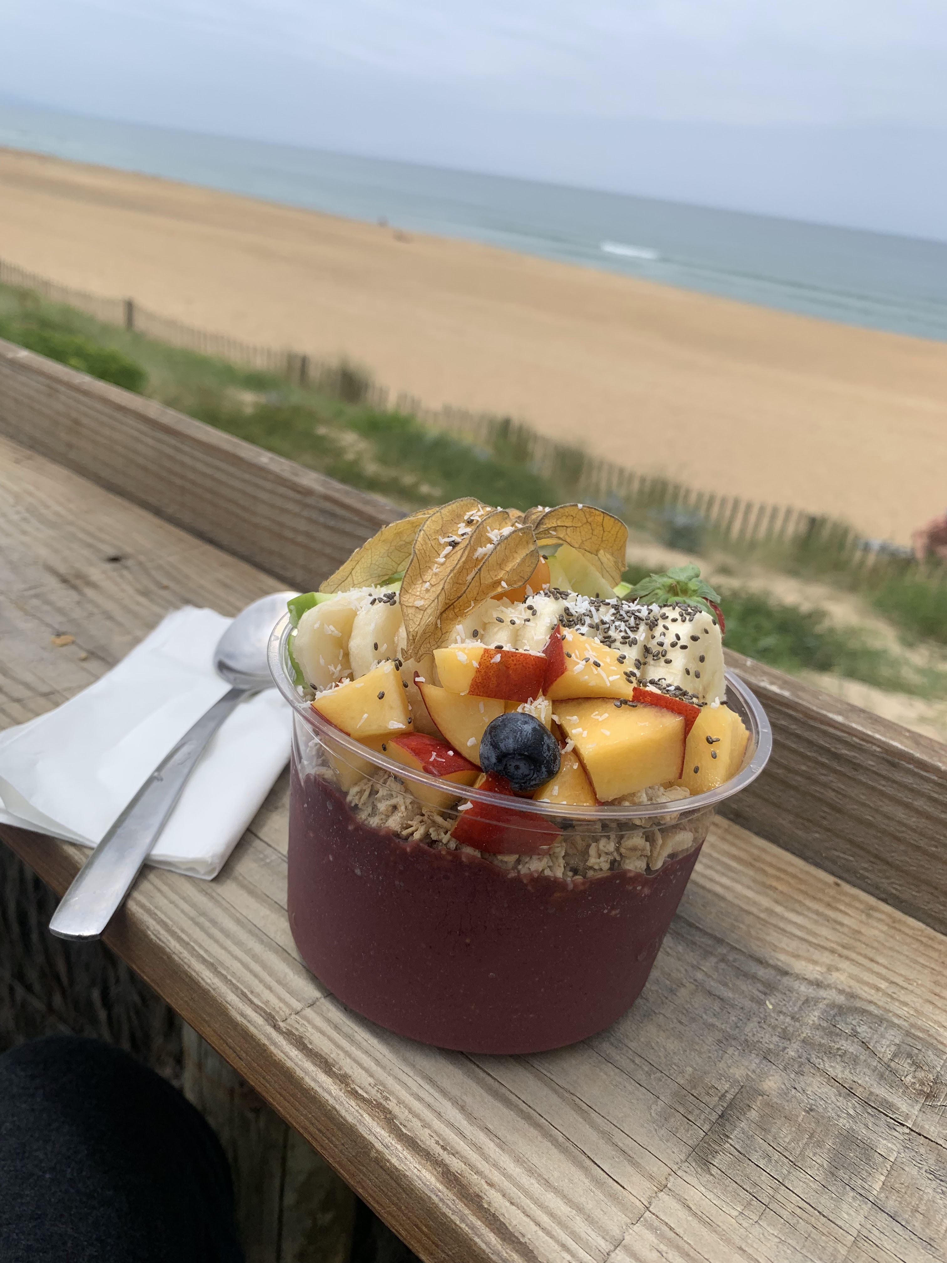 Service très attentionné, le serveur a modifié l’acai bowl pour nous sans problème. C’était en plus délicieux et le cadre vue sur mer est top.
