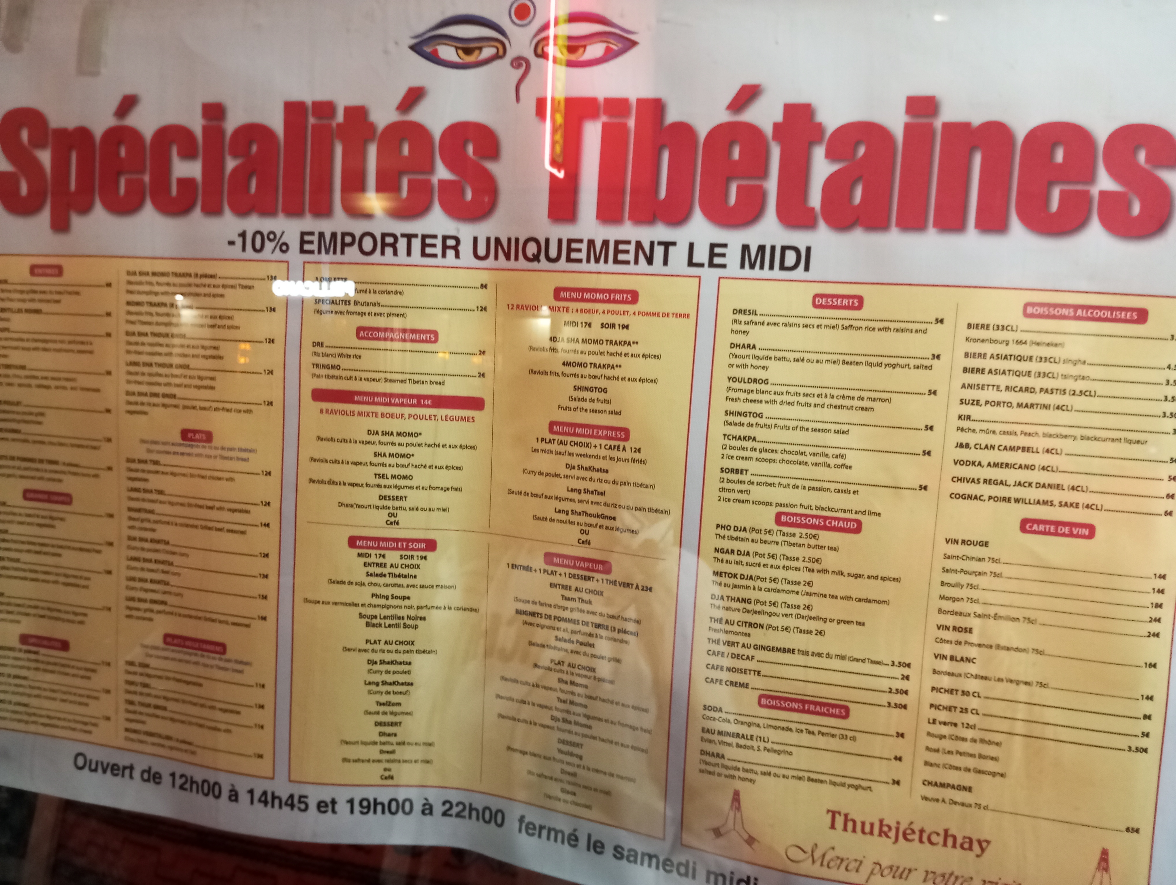 Excellente découverte de la cuisine tibétaine, avec des similitudes avec la cuisine chinoise, spécialités de raviolis et de pâtes tout était très bon, prix modérés.