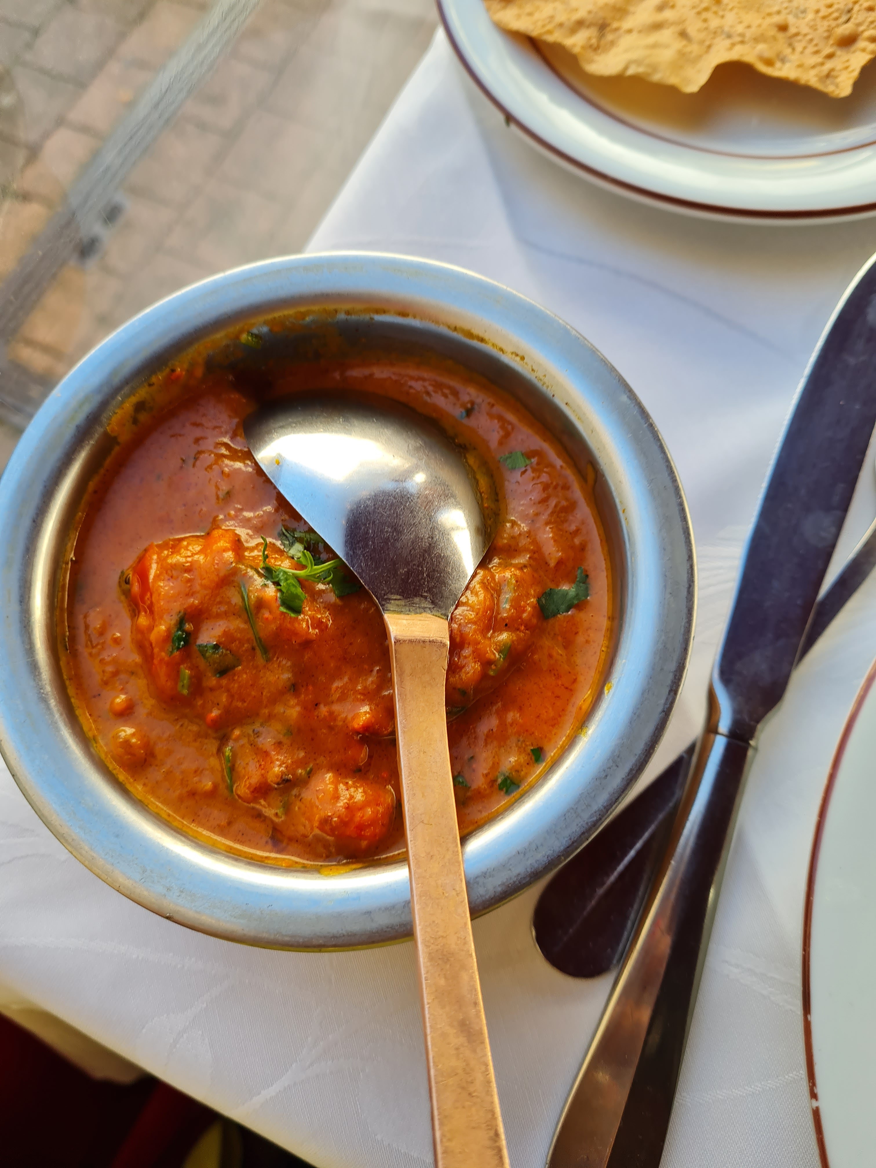 Bon restaurant indien avec une terrasse donnant sur une rue piétonne, donc plutôt calme, ce qui est très appréciable en ville. La cuisine est parfumée et la carte offre un large choix de plats à des prix corrects. Il y a également des menus, dont certains ne sont disponibles que le midi. Le service est prévenant et efficace.