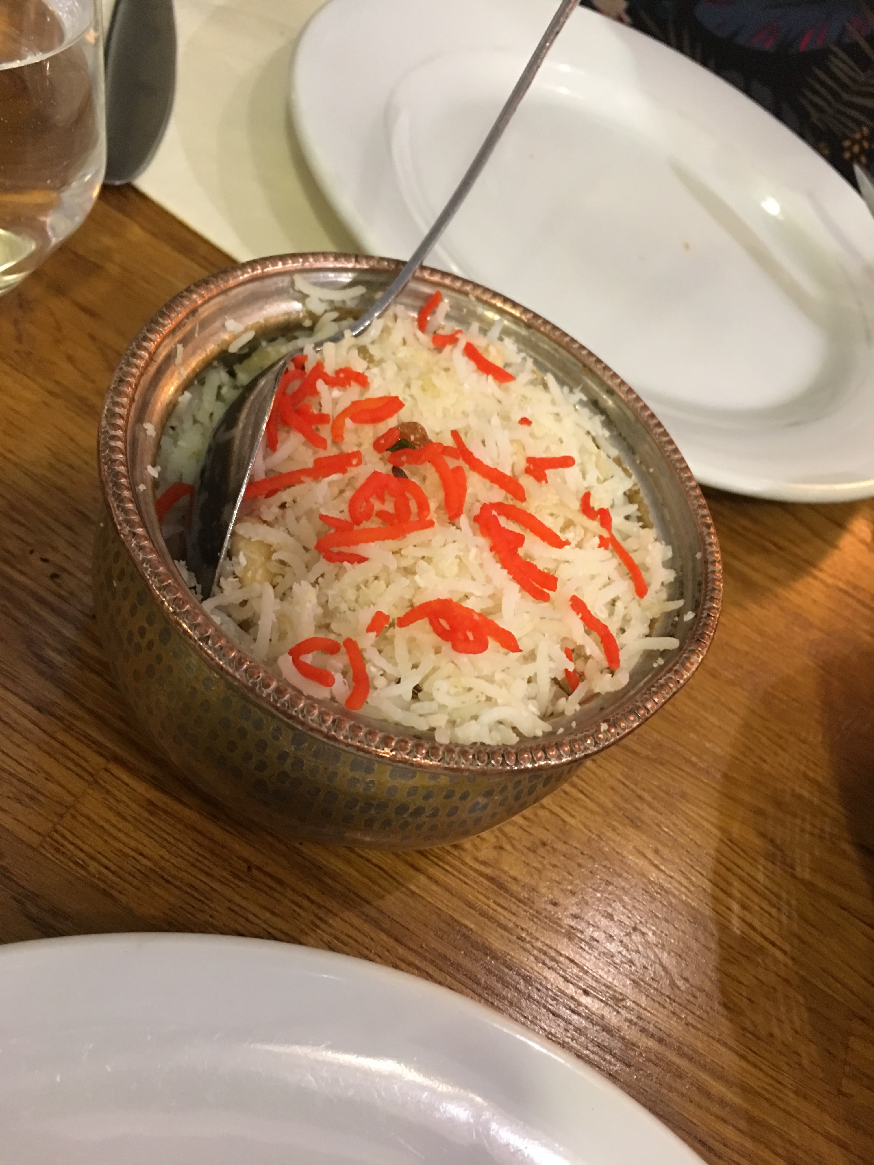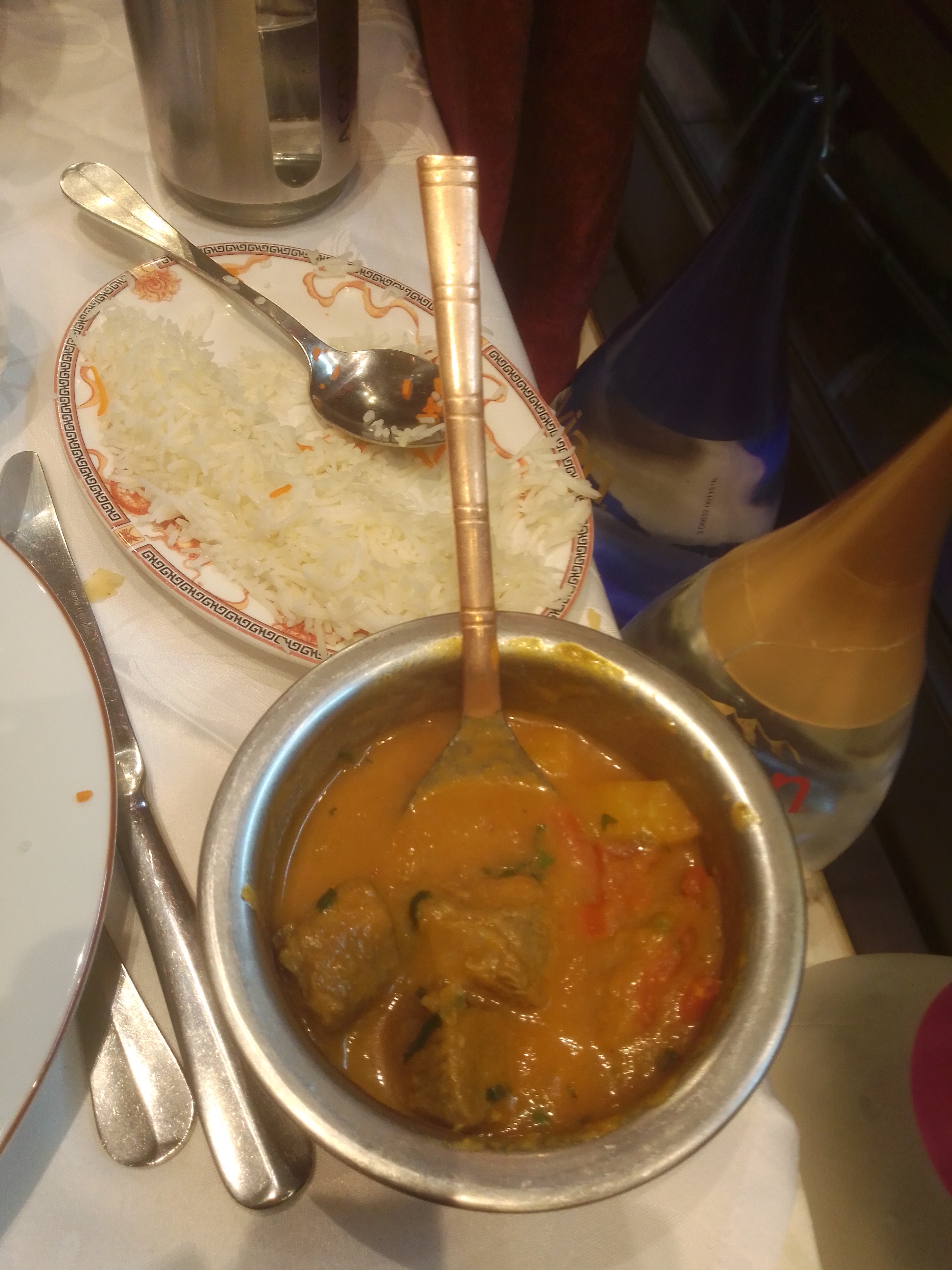 Repas au top, on a pris un dahl de lentilles et un poulet shaki korma (désolée pour l’orthographe) et c’était super ! La viande était tendre et épicée mais pas trop piquante. Les serveurs et les serveuses étaient très avenants.