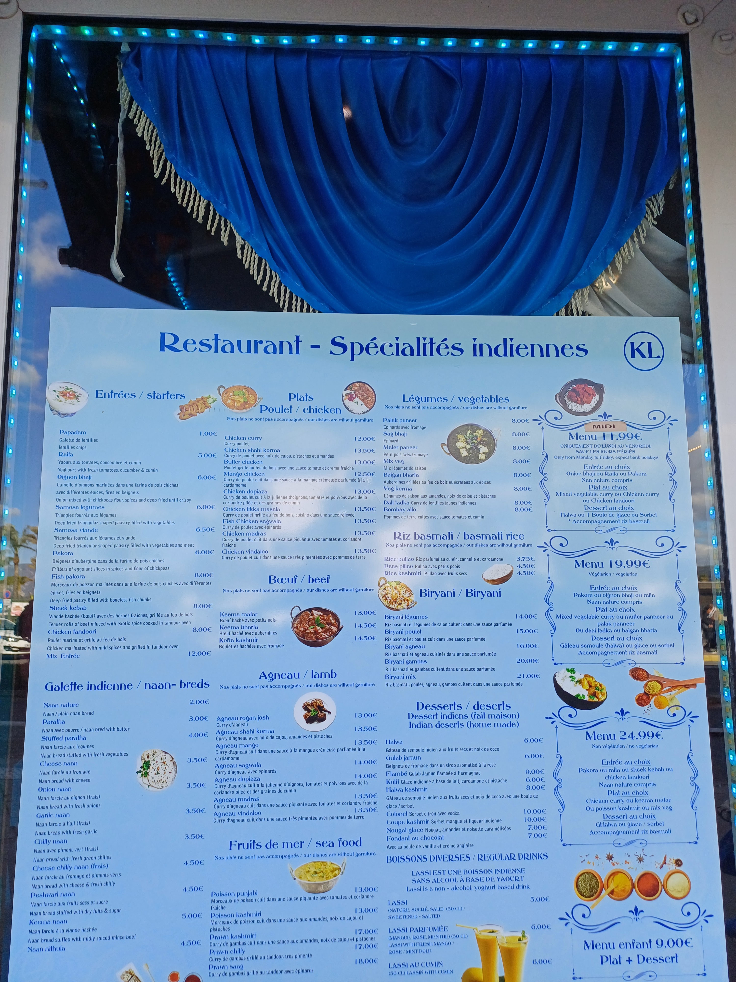 Très décevant,on a du mal à reconnaître la nourriture indienne..et le rosé sucre du Var à 16 €.,non merci de il