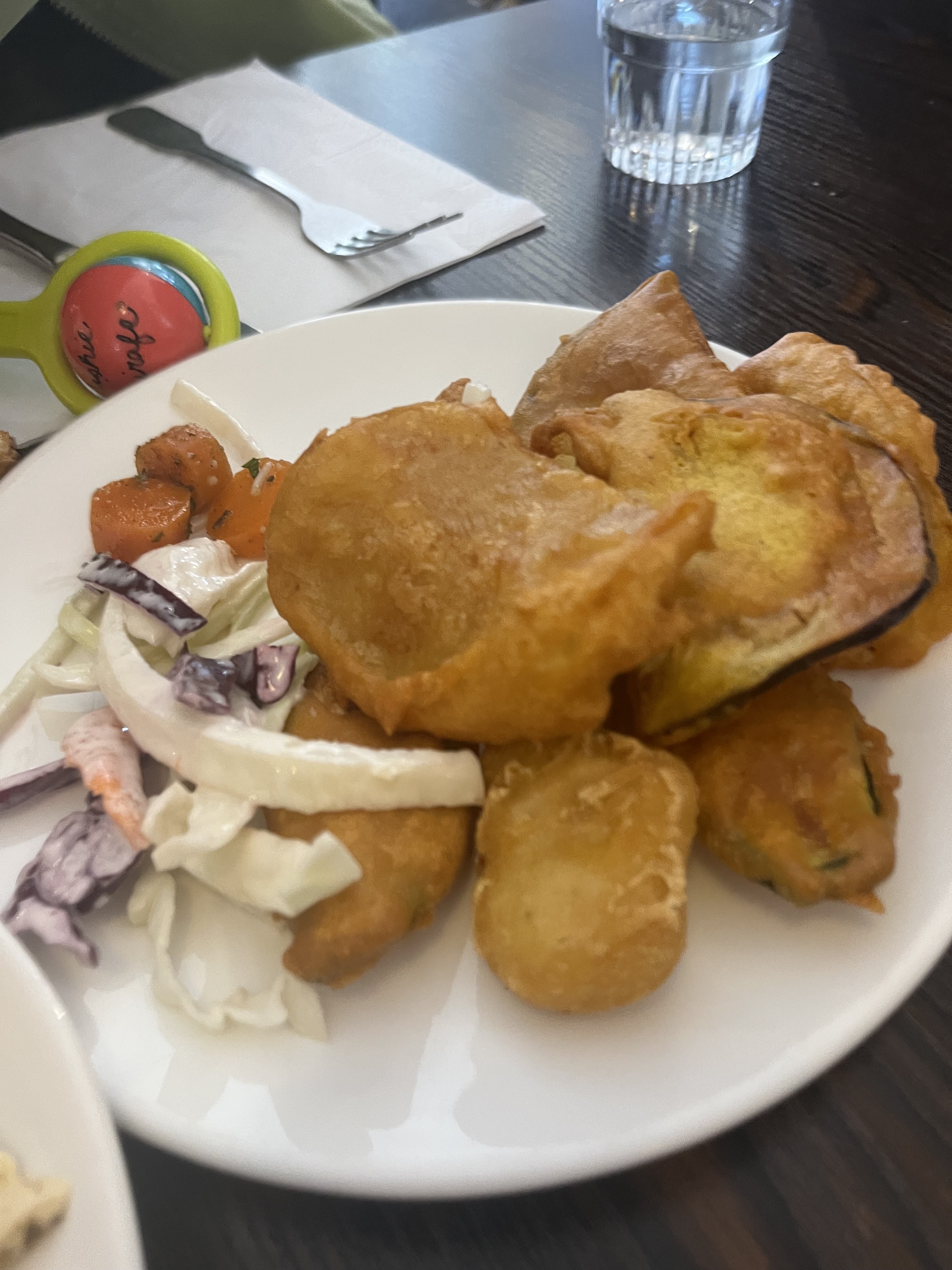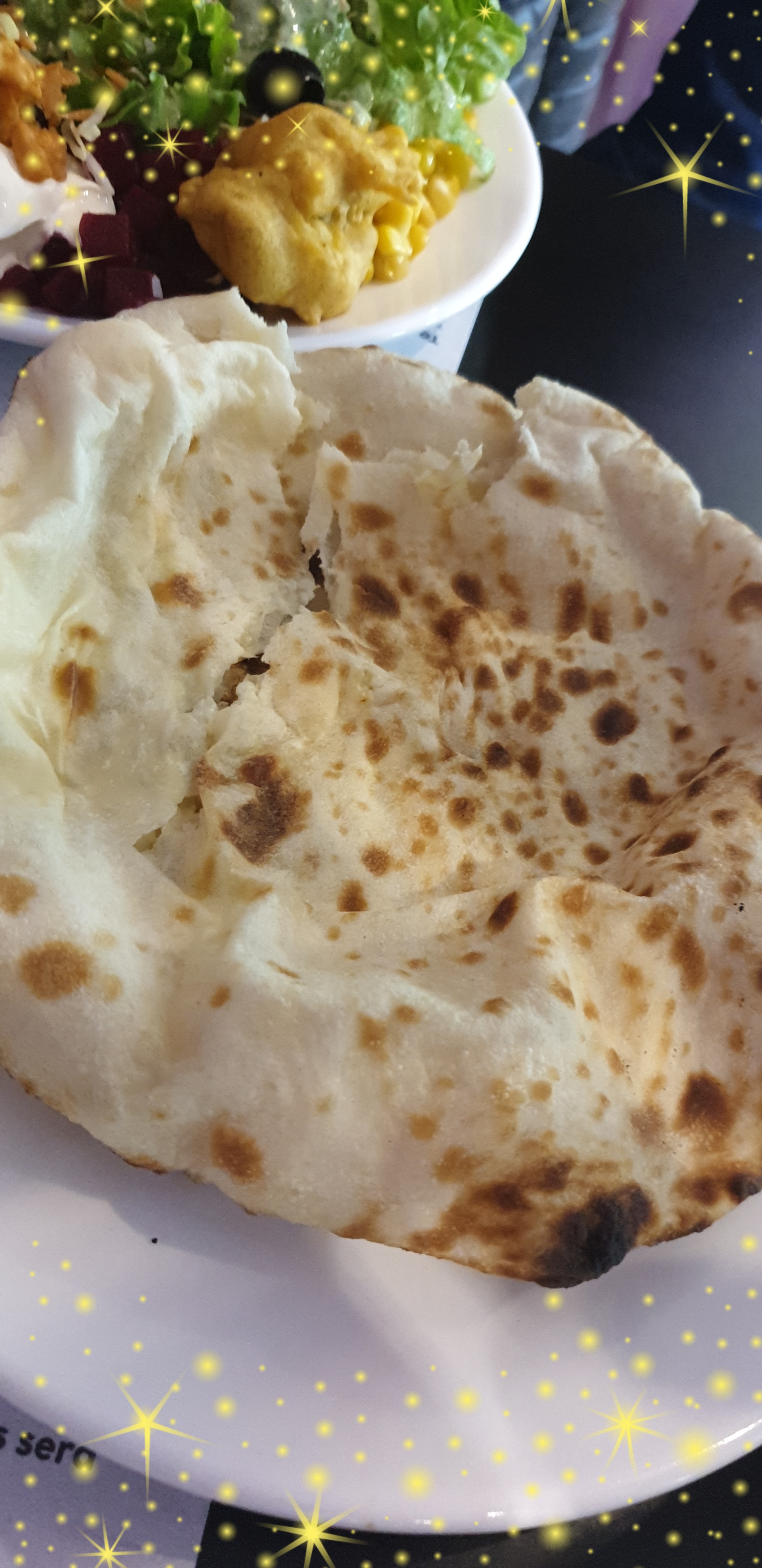 Personnel sympathique. Les plats sont plutôt moyen. Manque de cuisson pour les brochettes. Salade de tomate très très bonne. Tzatziki trop liquide. Le houmous été bon et les beignets de légumes et poisson vraiment basique. Très bon naan. Je vous déconseille les petits gâteaux ; orange et celui aux sésames (cf photo) ils sont sans goût. C’est à essayer mais personnellement je n’y retournerai pas. Bon concept mais à améliorer. Bonne continuation.