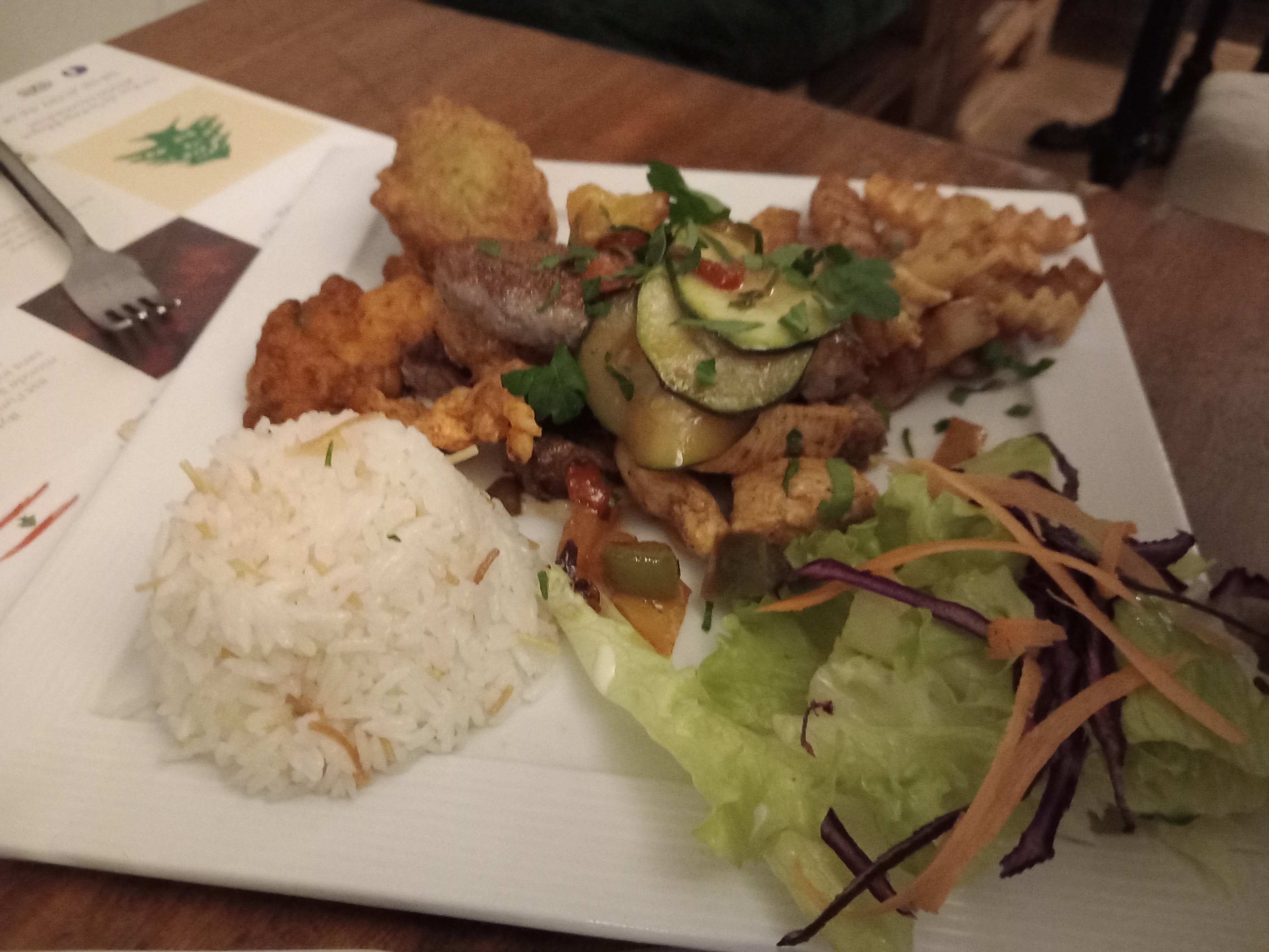 Bon restaurant libanais Assiettes copieuses , plusieurs menus proposés pour tout budget. Service très bon ! Ça mérite qu'on s'y arrête.