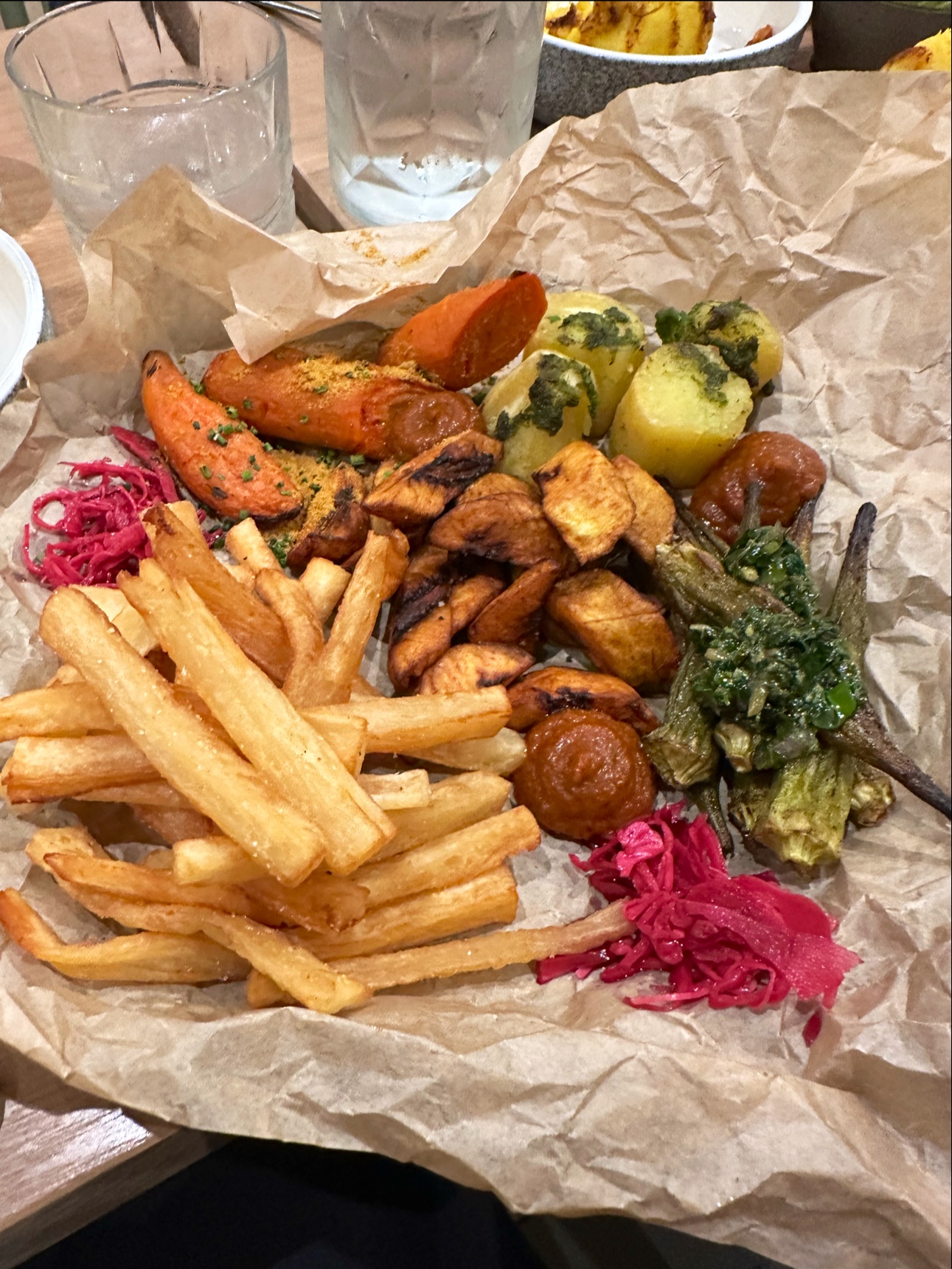 Kassava a été une expérience incroyable. Nous cherchions un endroit pour dîner et nous passions devant ce restaurant. Nous avons commandé plusieurs assiettes de nourriture, dont une assiette végétarienne et le ragoût du pêcheur. La nourriture nous a transportés dans de nombreux endroits merveilleux. L'ambiance était chaleureuse et la musique incroyable. Je recommande fortement de venir essayer leur cuisine fusion. Vous pouvez dire qu’une quantité importante de réflexion et d’amour a été apportée à chaque plat, depuis la cuisson, le dressage et même le service. N'oubliez pas de prendre un verre de jus de Baobab !