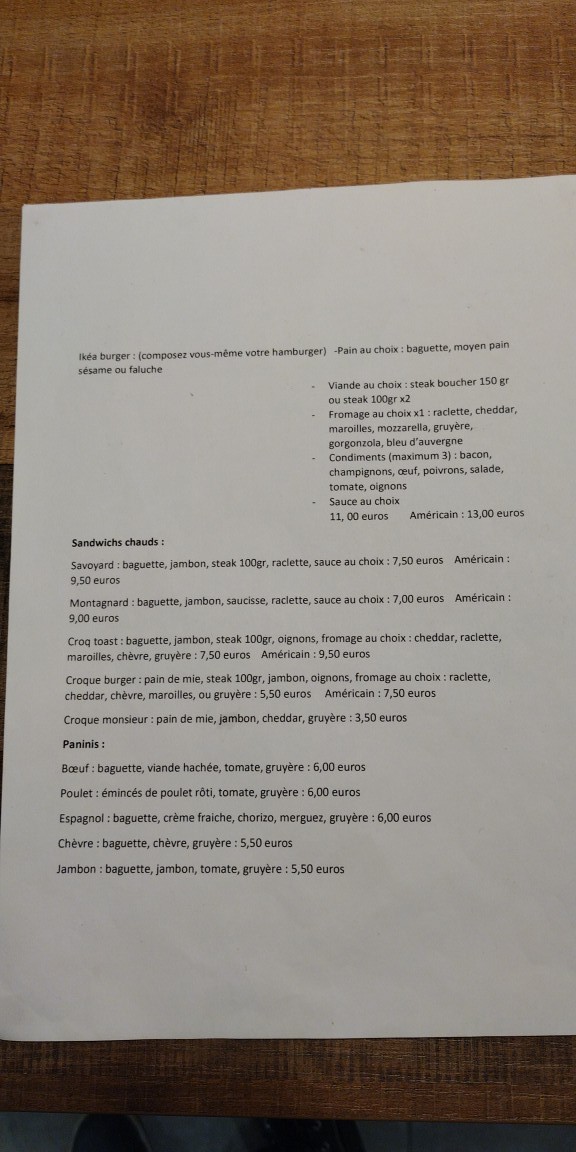 La carte n'est pas du tout détaillée, on est obligé de demander le contenu des burgers sinon on ne sait pas a quoi s'attendre. Les paninis sont petits et pauvres en garniture, les frites pas vraiment cuites et il y a beaucoup d'erreurs sur la commande malgré 3 personnes sur place. De plus ce n'est pas donné au vu de la prestation proposée. Je déconseille.