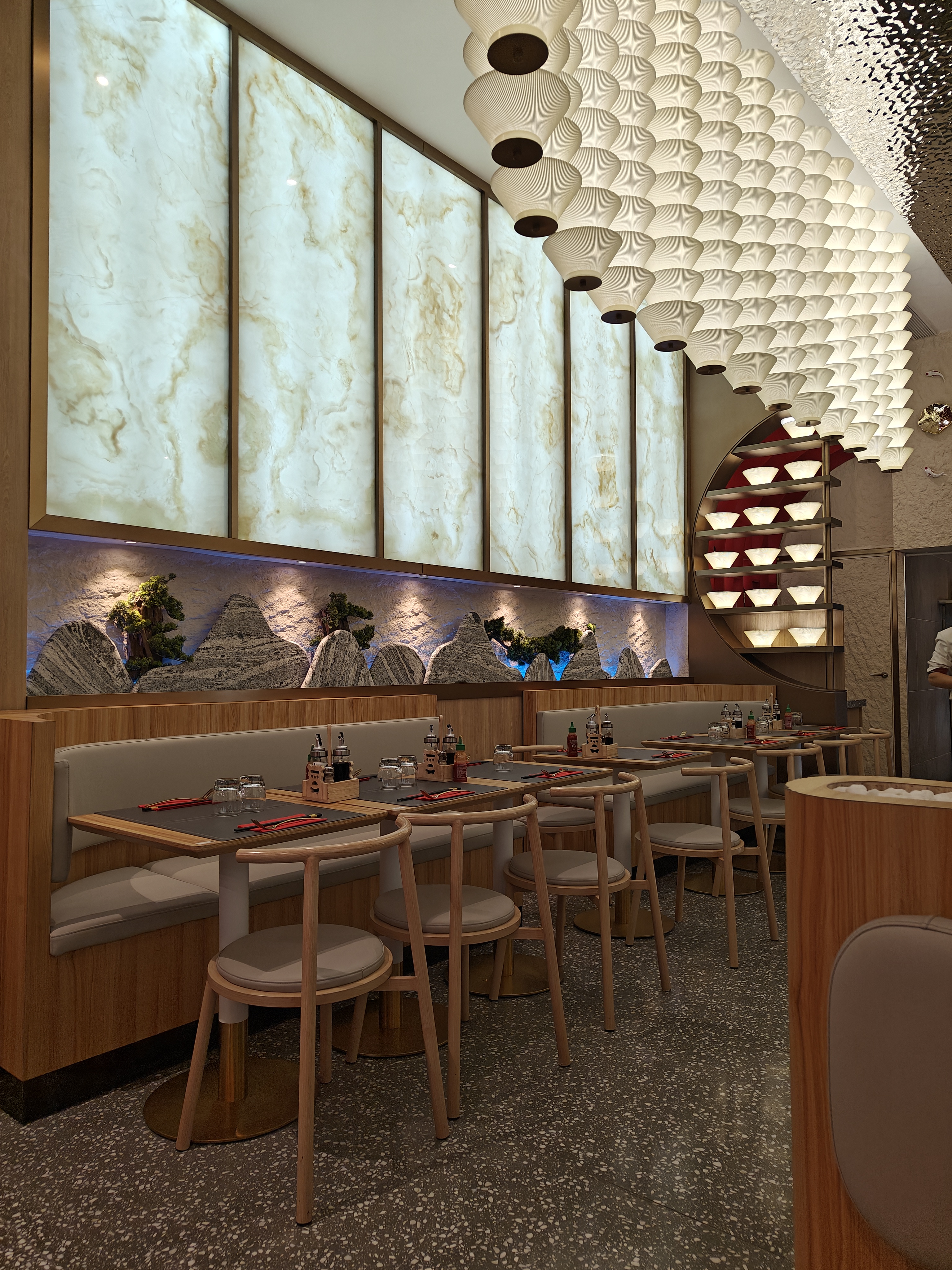 Très propre, avec une ambiance épurée chic très sympa. Service rapide. Pas de spécialité dans ce resto, je recommande de prendre des plats à base de poisson crue ou des plats japonais. Un peu cher et pas assez épicé sinon c’est correcte.